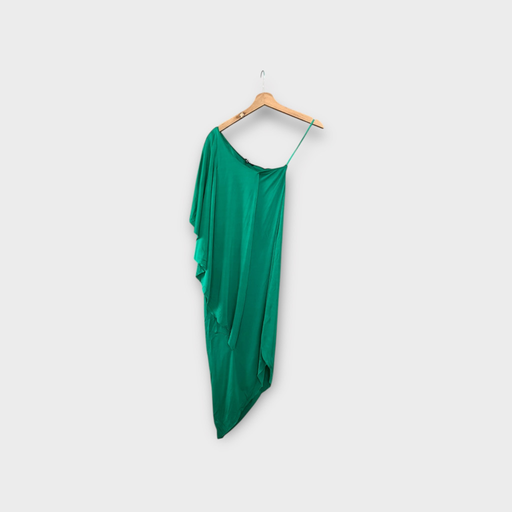 Különleges, asszimetrikus női ruha. A beleírt méret 40, de inkább M-es méretre ajánljuk.