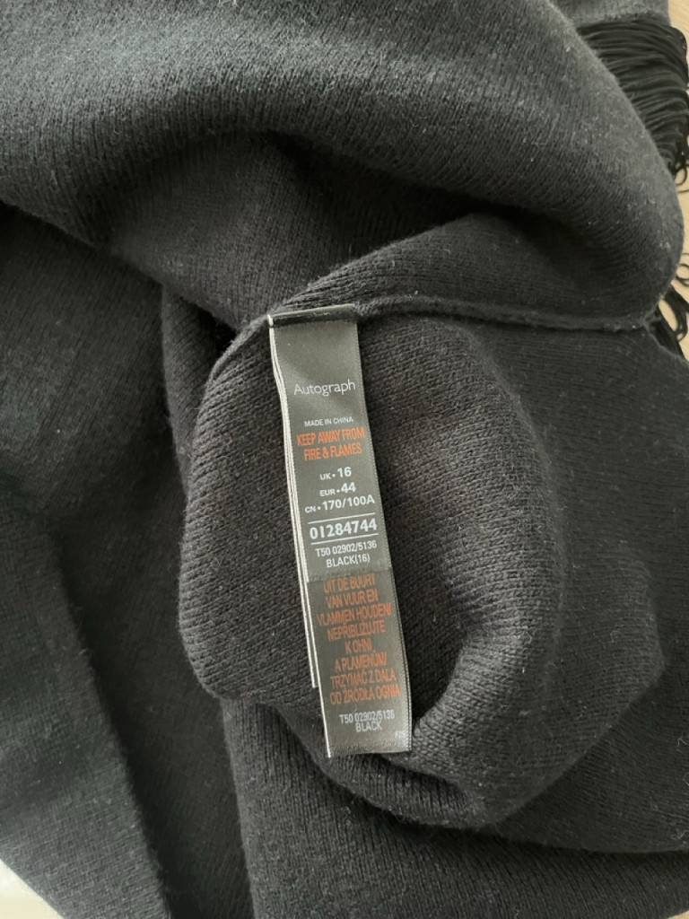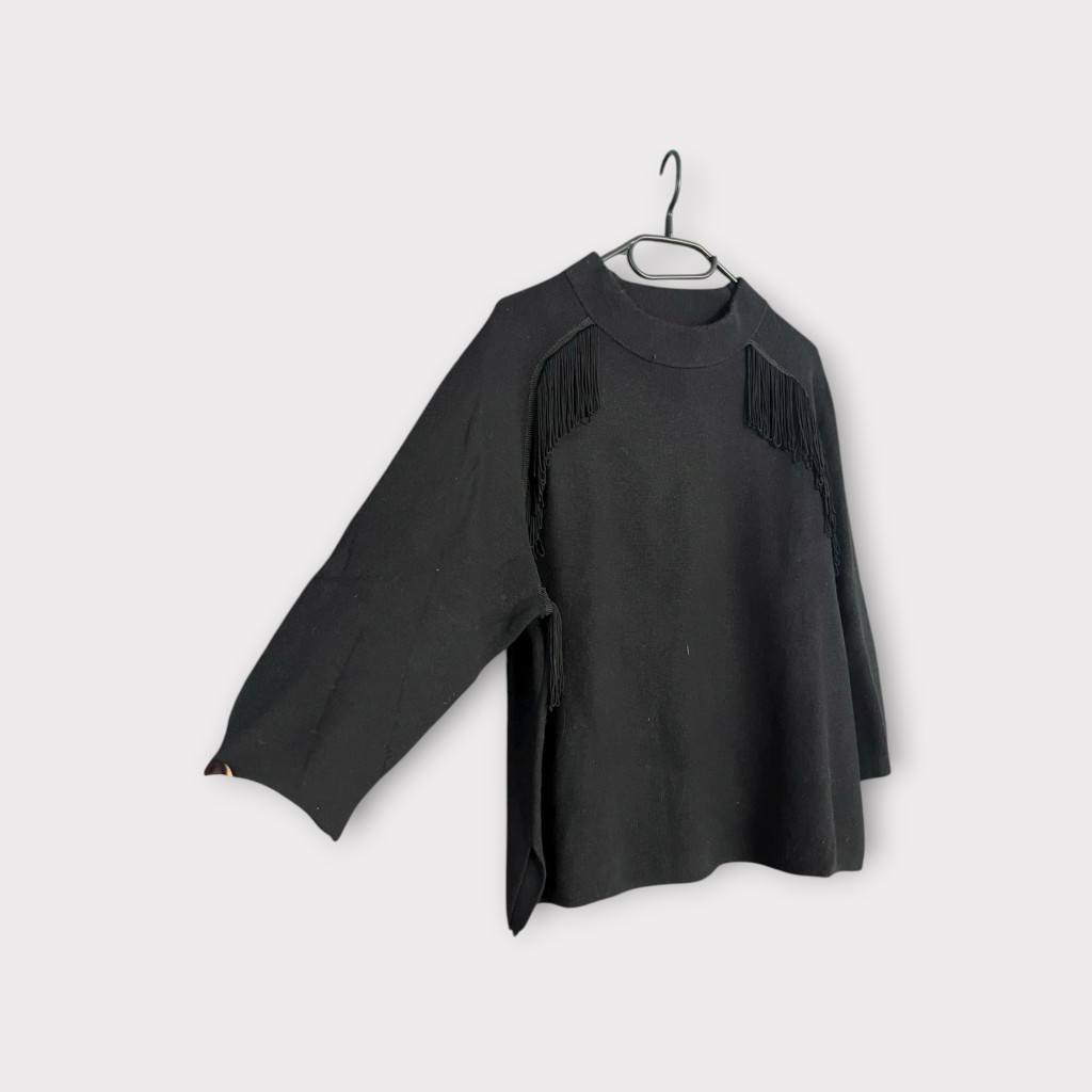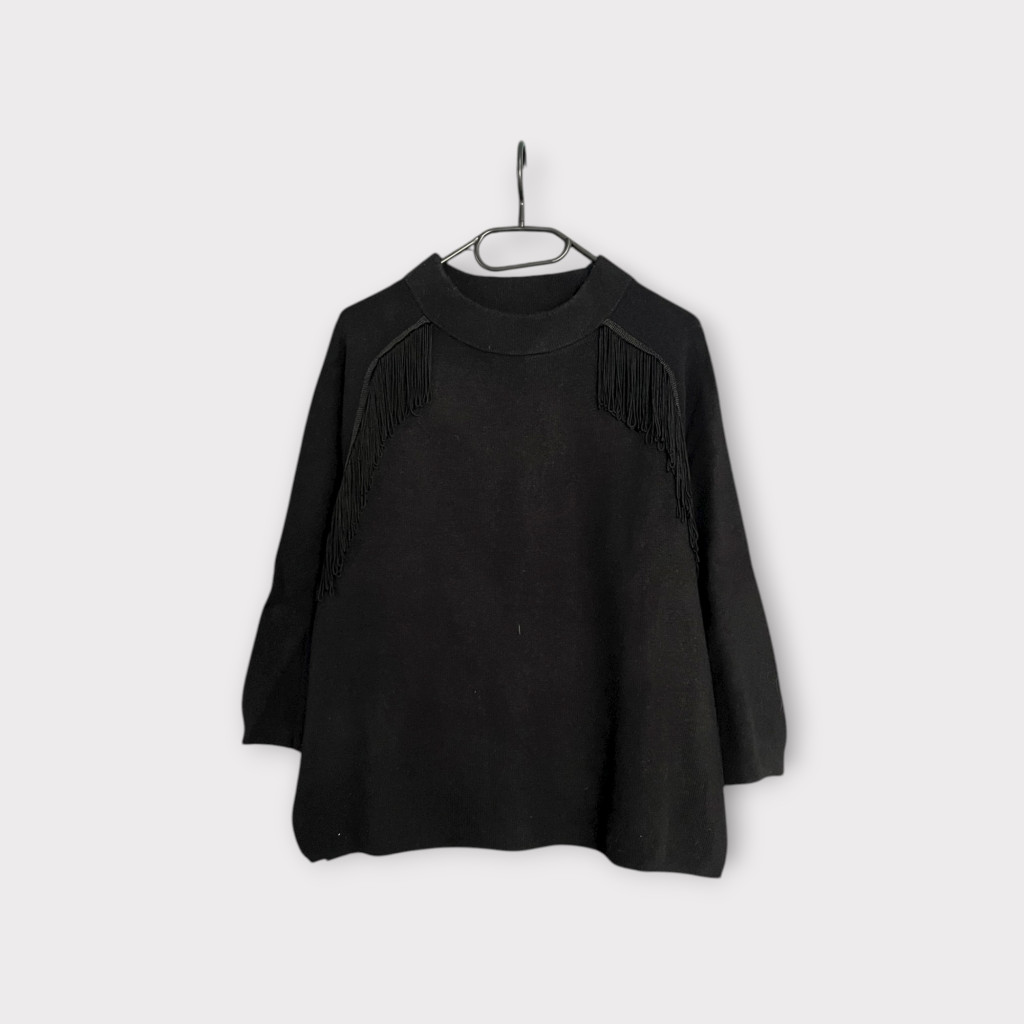 Fekete, elől rojtos pulóver XL-es méretben.