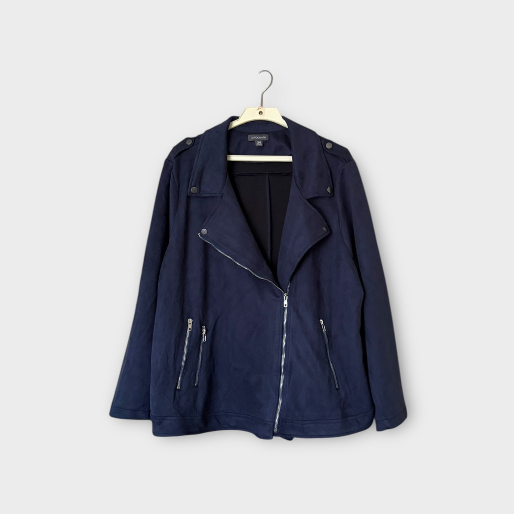 Sötétkék, puha művelúr dzseki 3XL-es méretben.