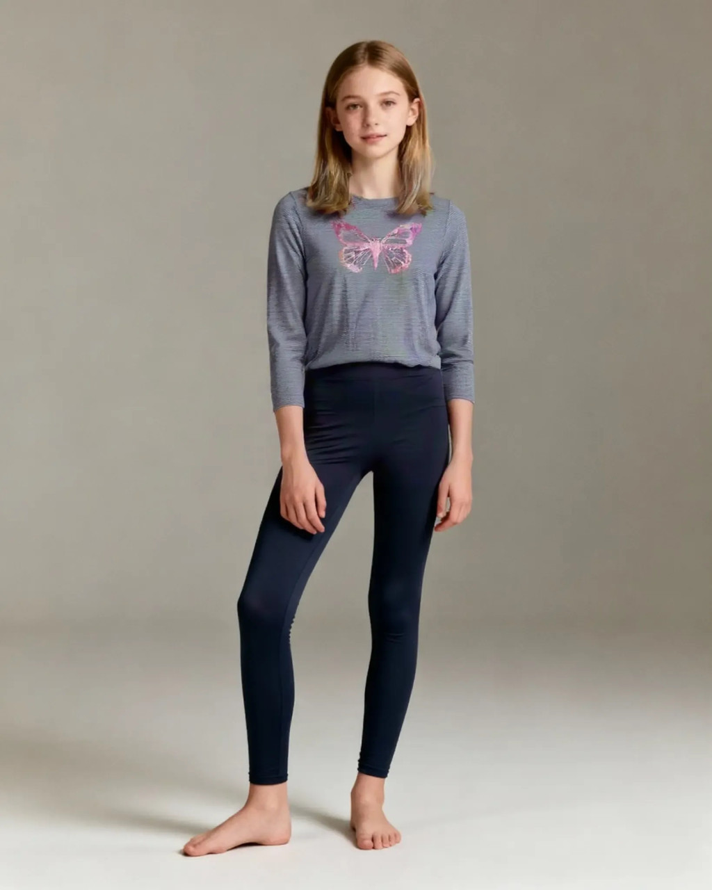 Szürke melegítőfelső csillogó pillangó mintával, 122-128-as méretben.