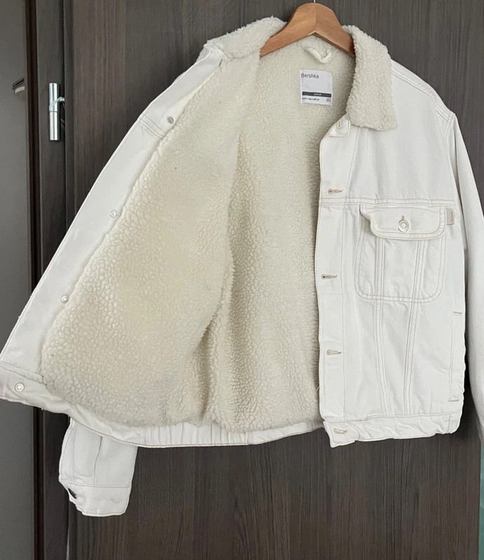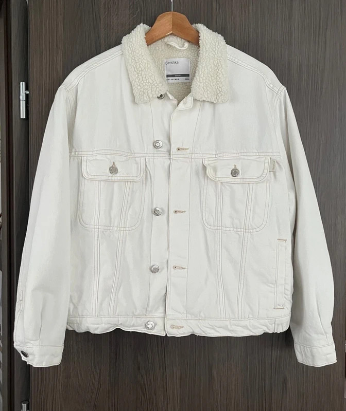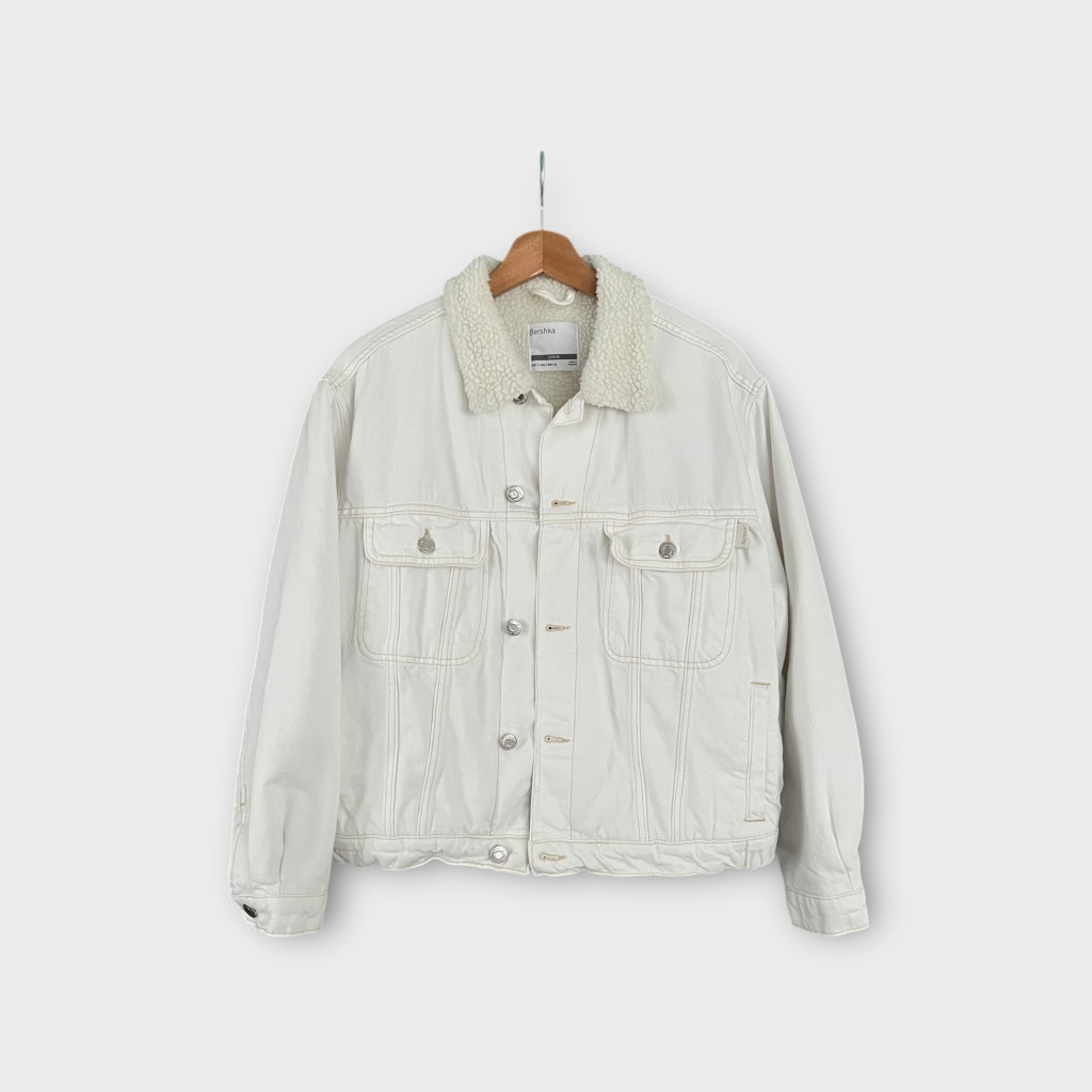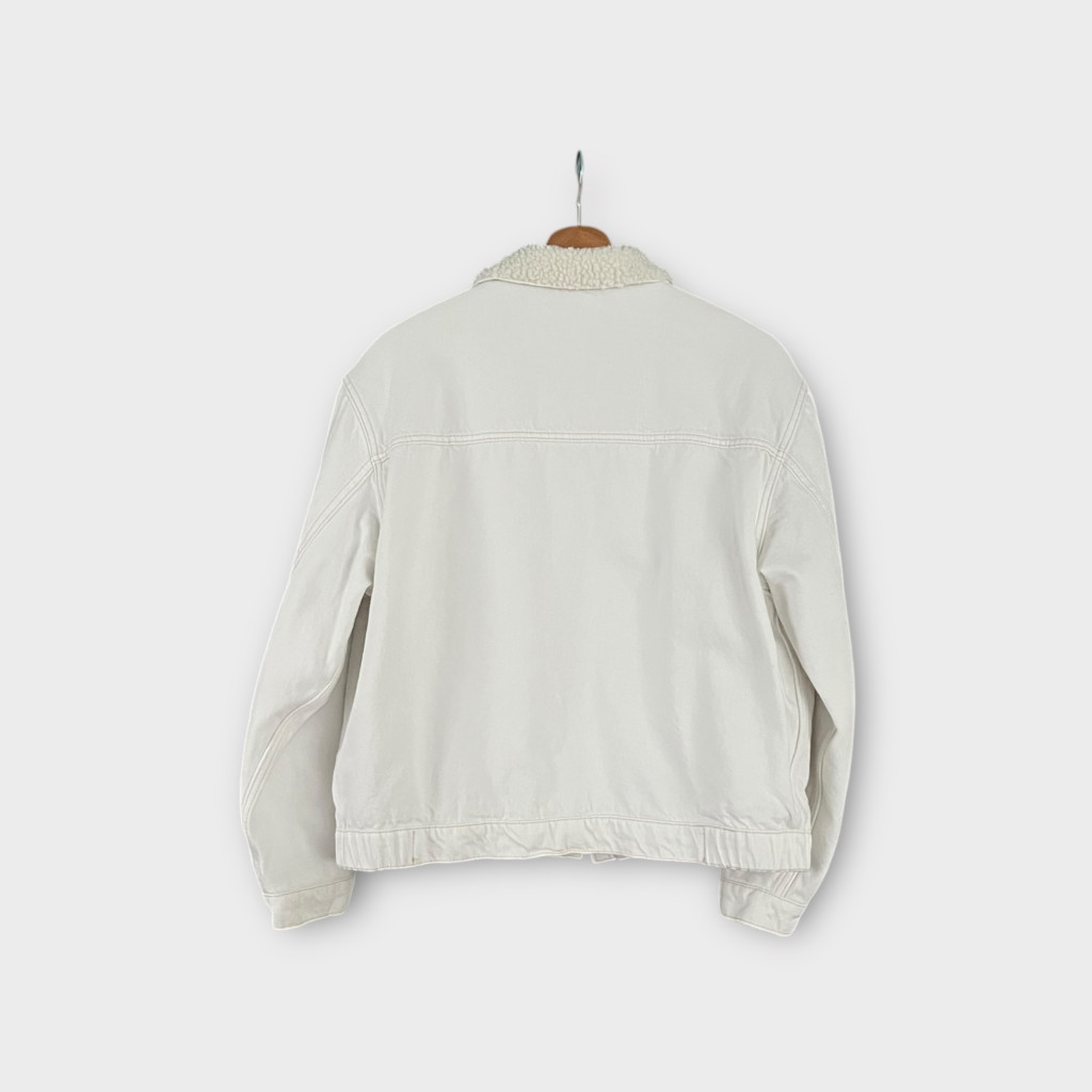 Fehér színű, bundás női farmerdzseki S-es méretben.