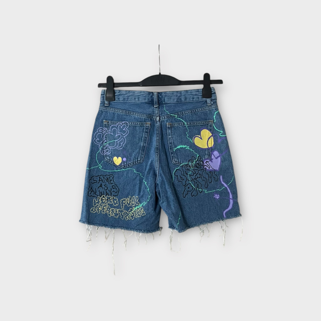 Magas derekú, mintás női rövidnadrág XS-es méretben.