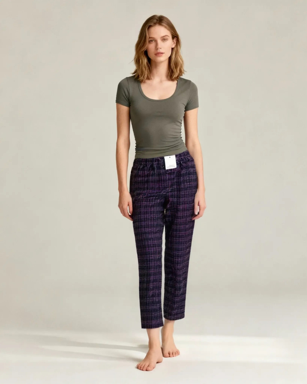 Gumis derekú, kockás női nadrág XS-es méretben.