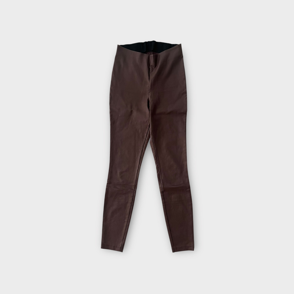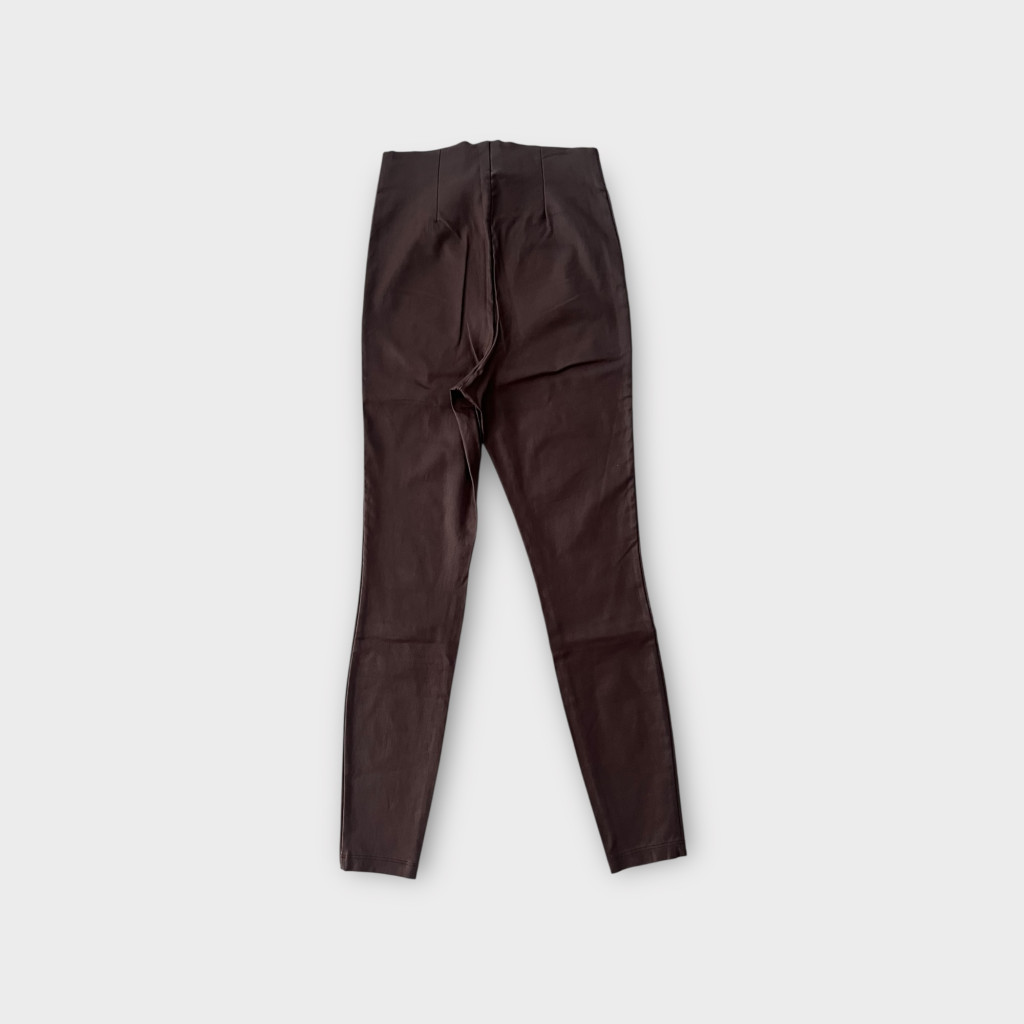 Barna színű, viaszolt női nadrág XS-es méretben.