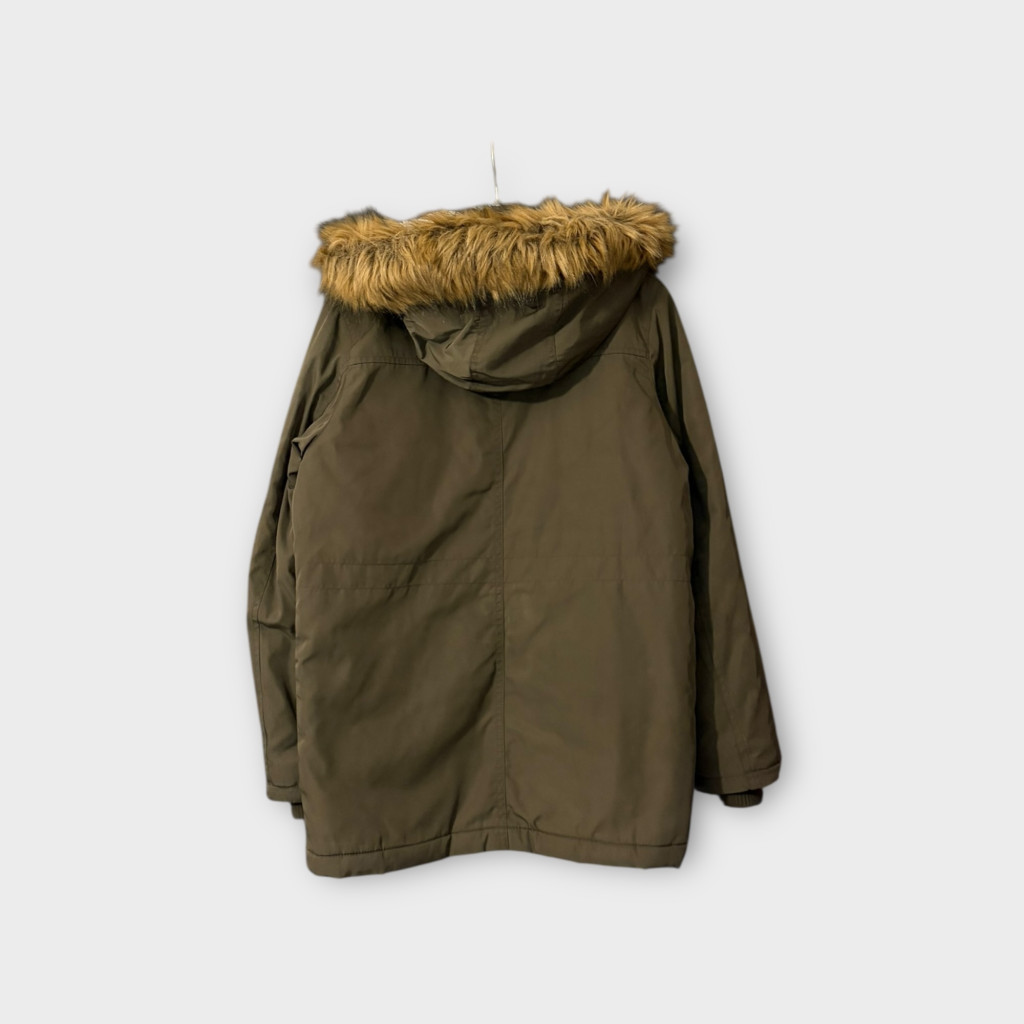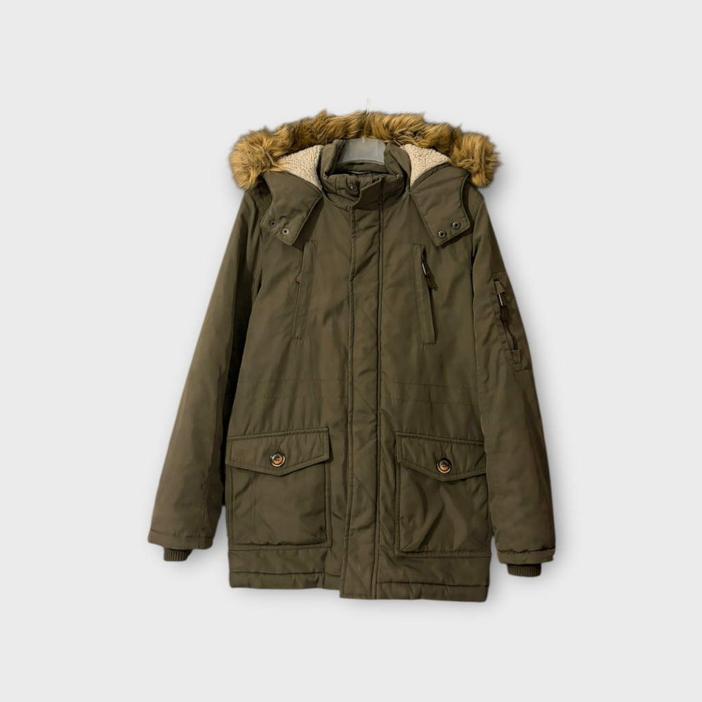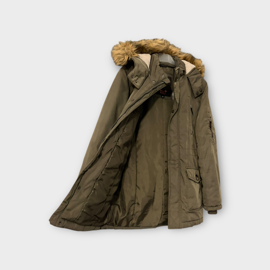 Khaki zöld fiú télikabát 146-os méretben.