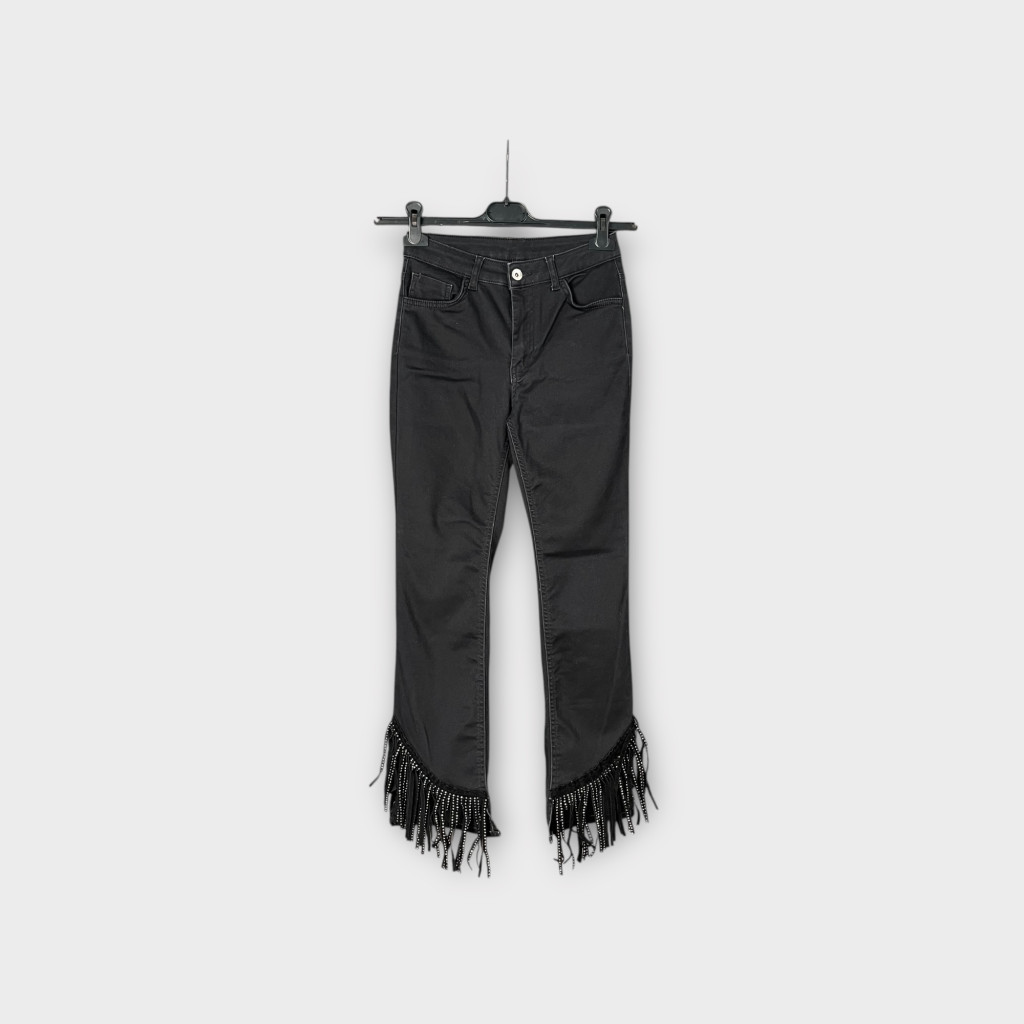 Rojtos aljú, rugalmas anyagú női nadrág.