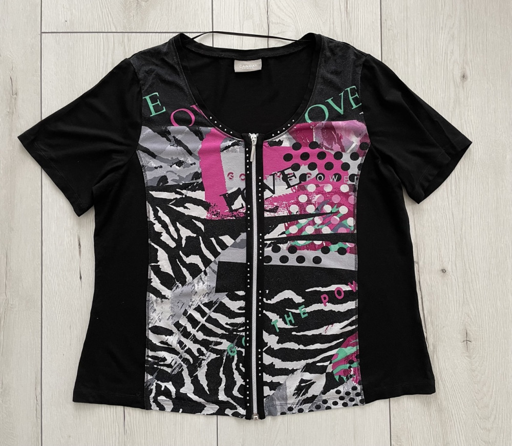 Két anyagú, zipzáras, színes női felső L-es méretben.