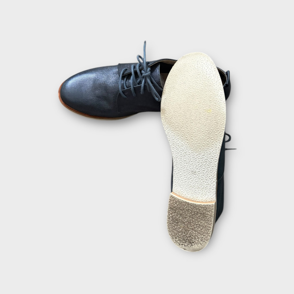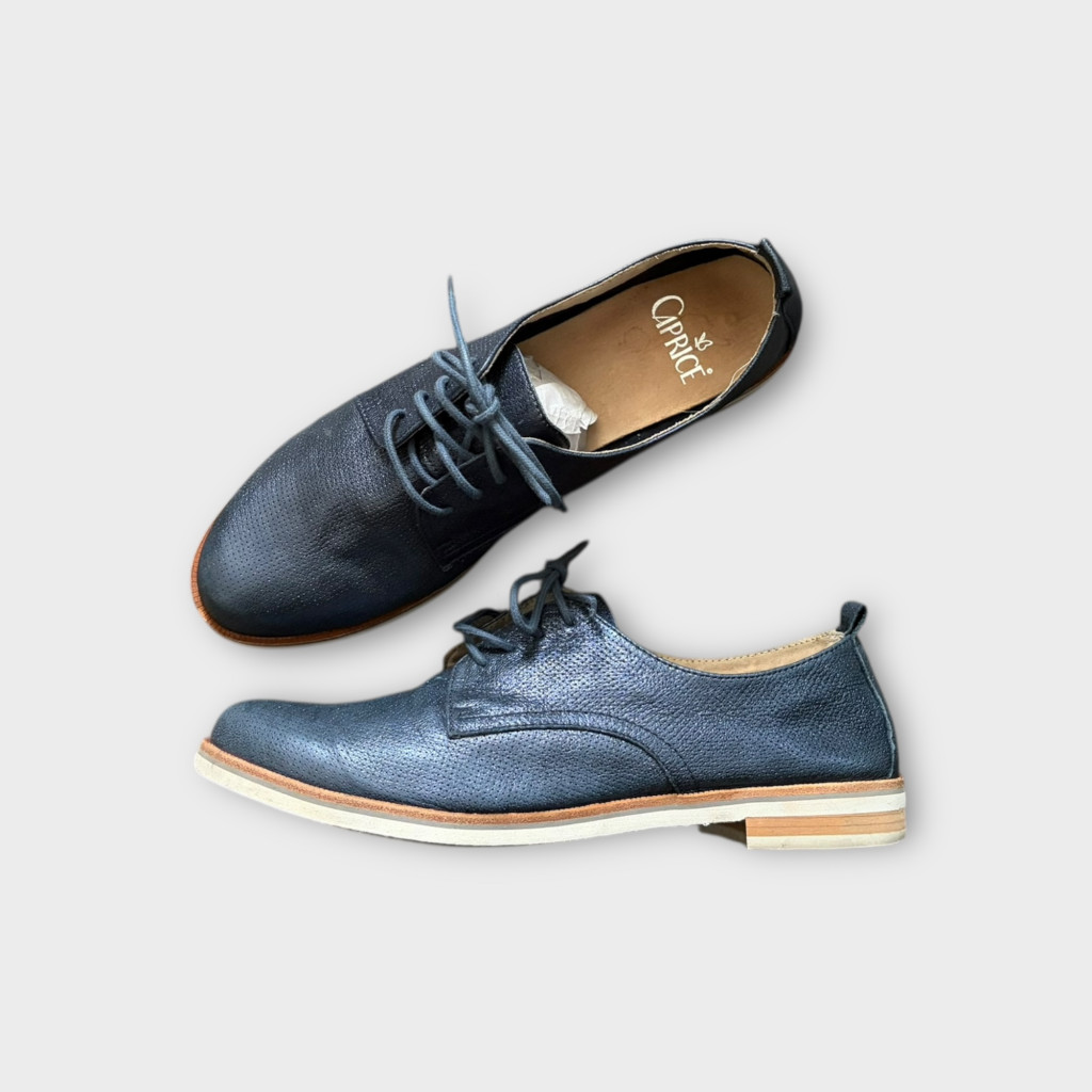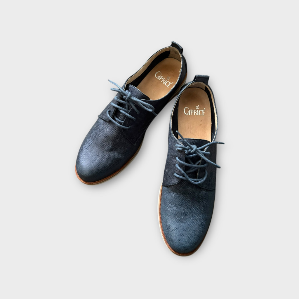 Sötétkék, puha bőrből készült női cipő 39-es méretben.