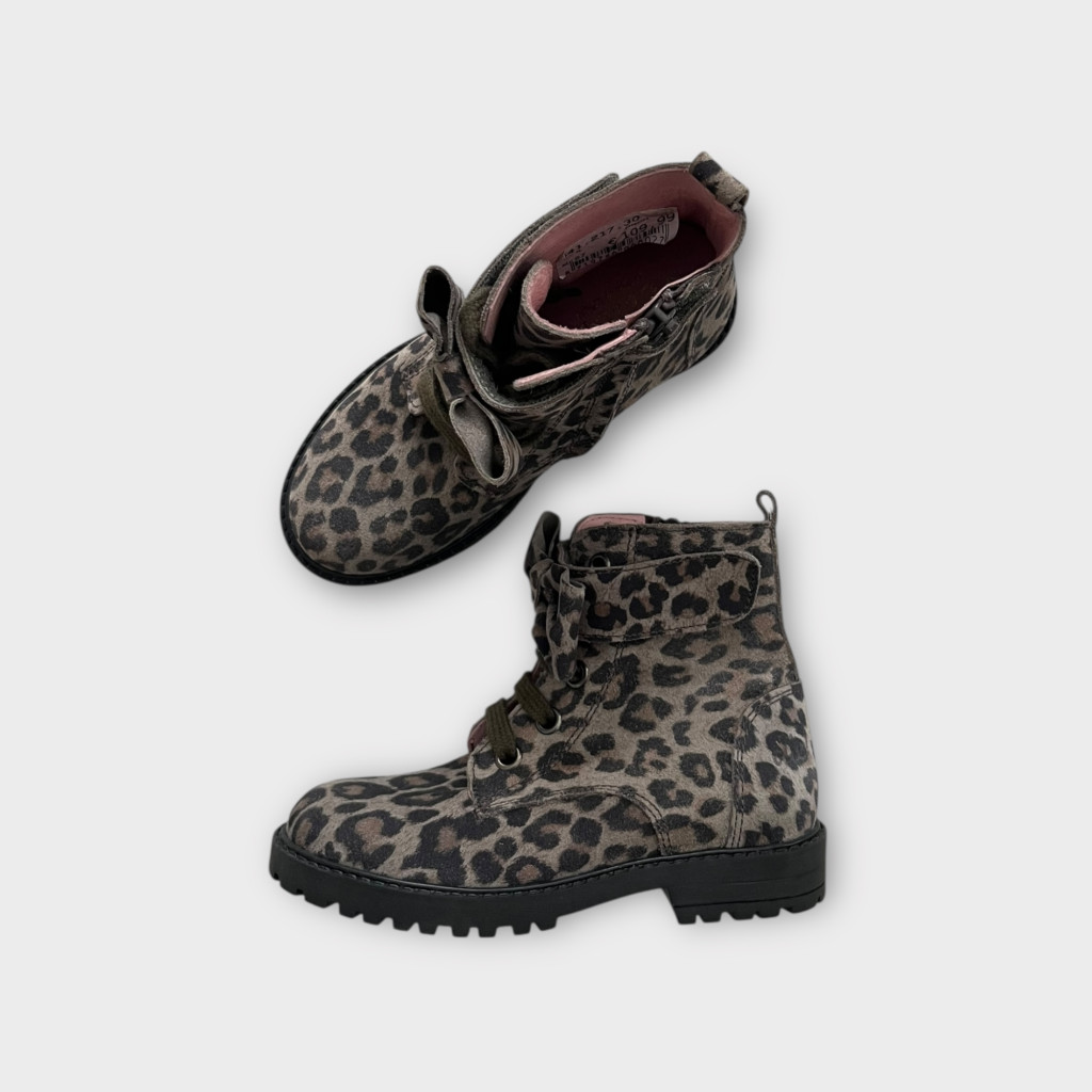 Leopárdmintás bőr bakancs 27-es méretben.