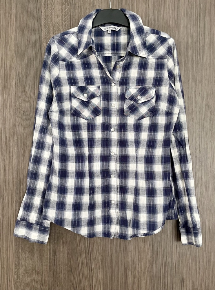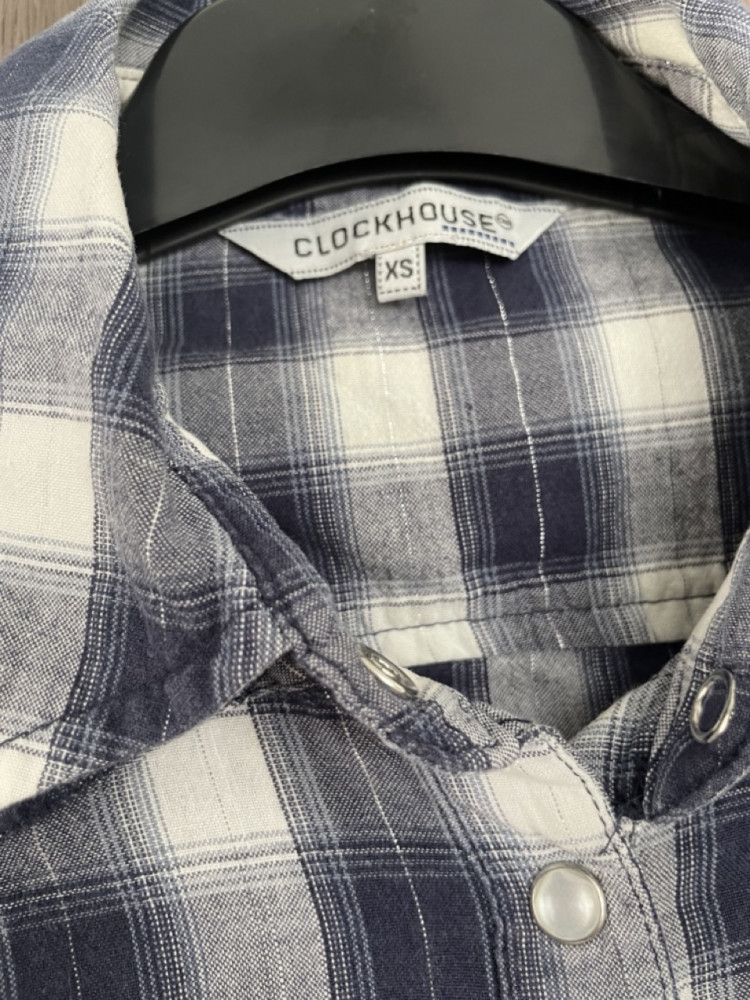 Kockás női ing csillámló szálakkal, XS-es méretben.