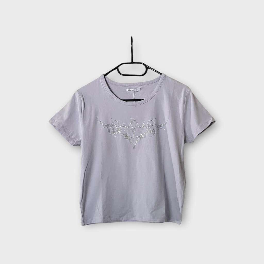 Rövid fazonú, testhezálló női póló L-es méretben.