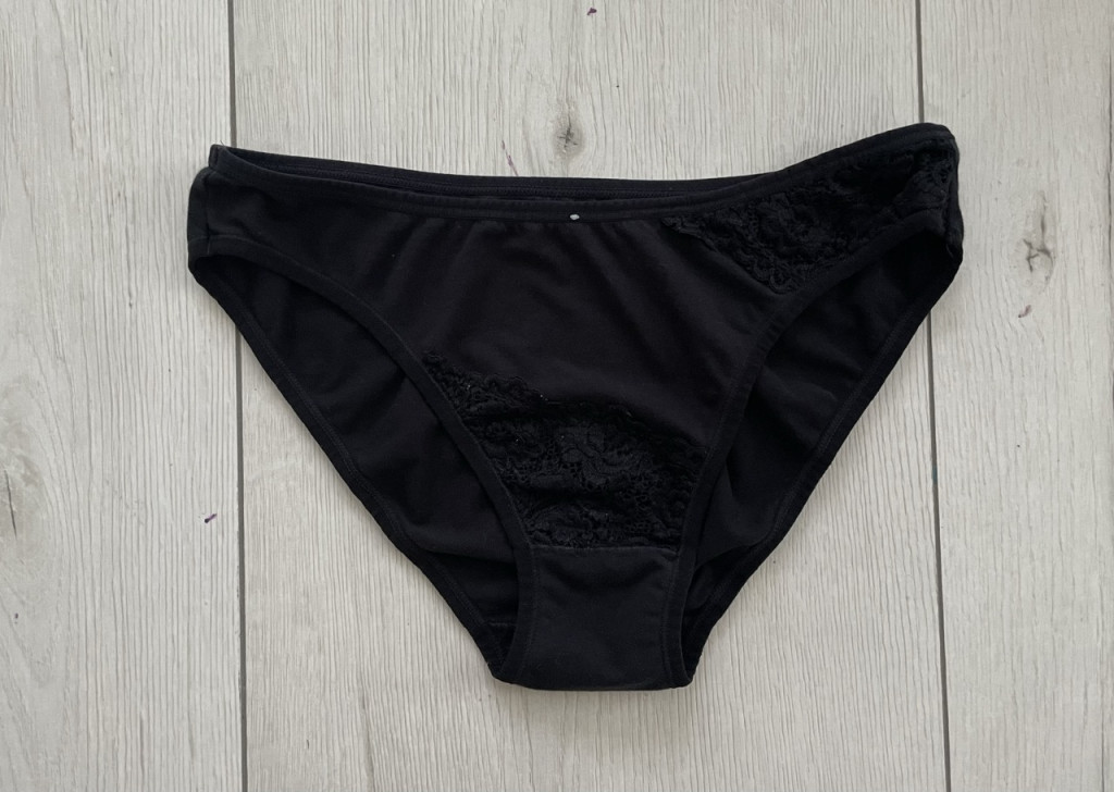Csipkedíszes női bugyi S-es méretben.