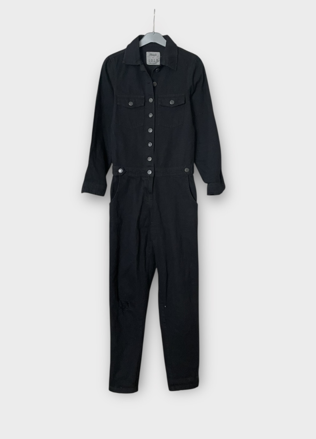Fekete női farmer overál XS-es méretben.