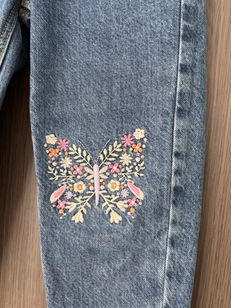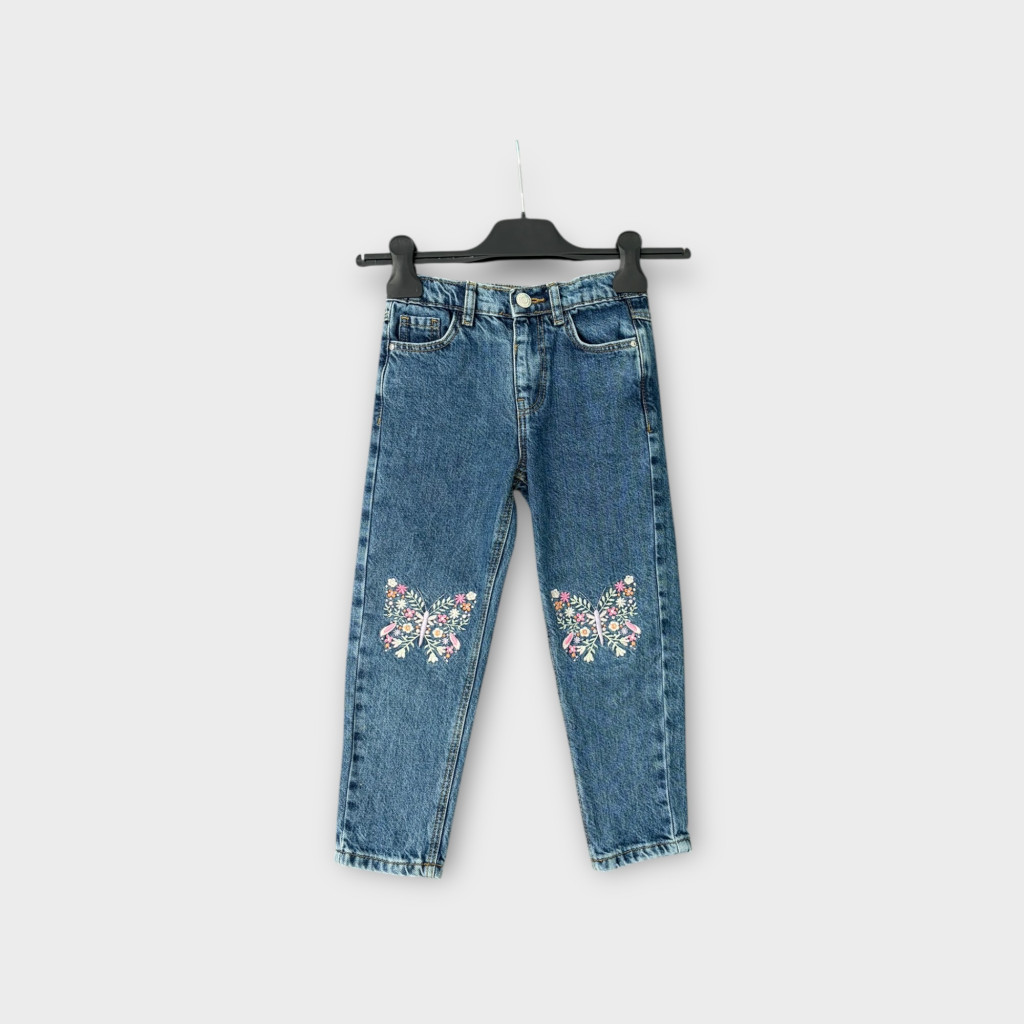 Laza fazonú, pillangós kislány farmernadrág.