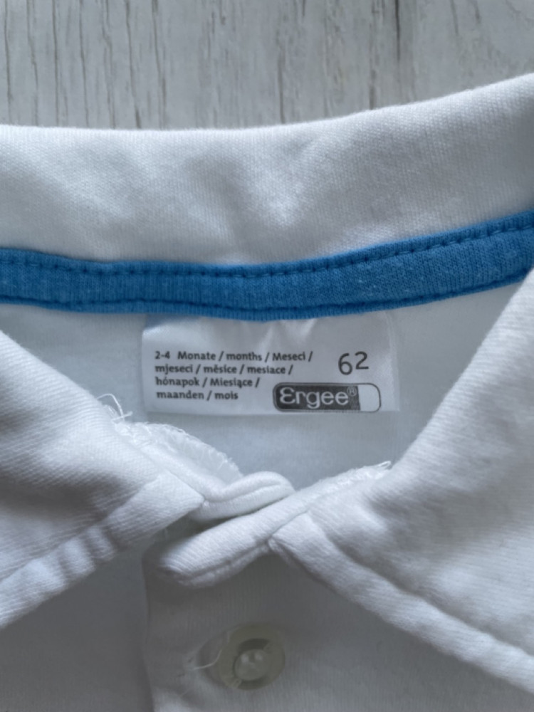 Fehér színű kisfiú body 62-es méretben.