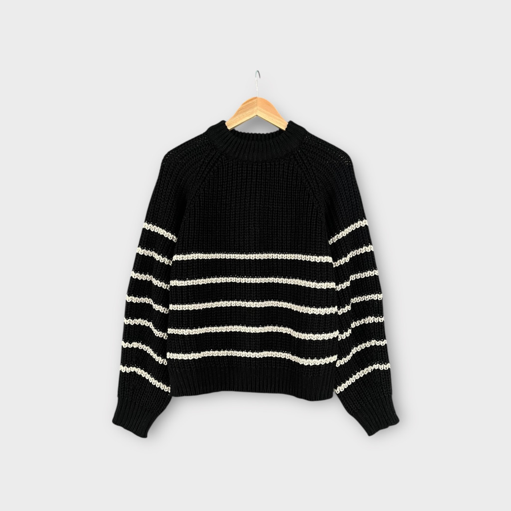 Vastag kötött, csíkos női pulóver M-es méretben.