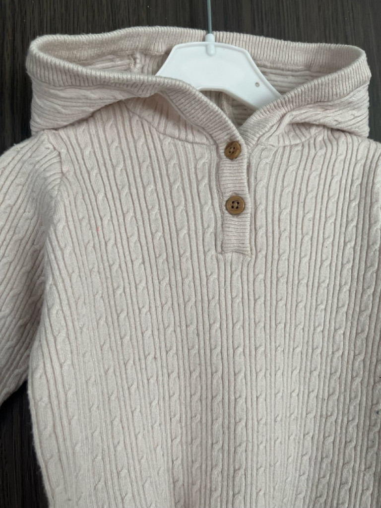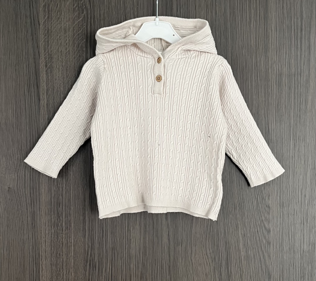 Kapucnis, kötött kisfiú pulóver 68-as méretben.