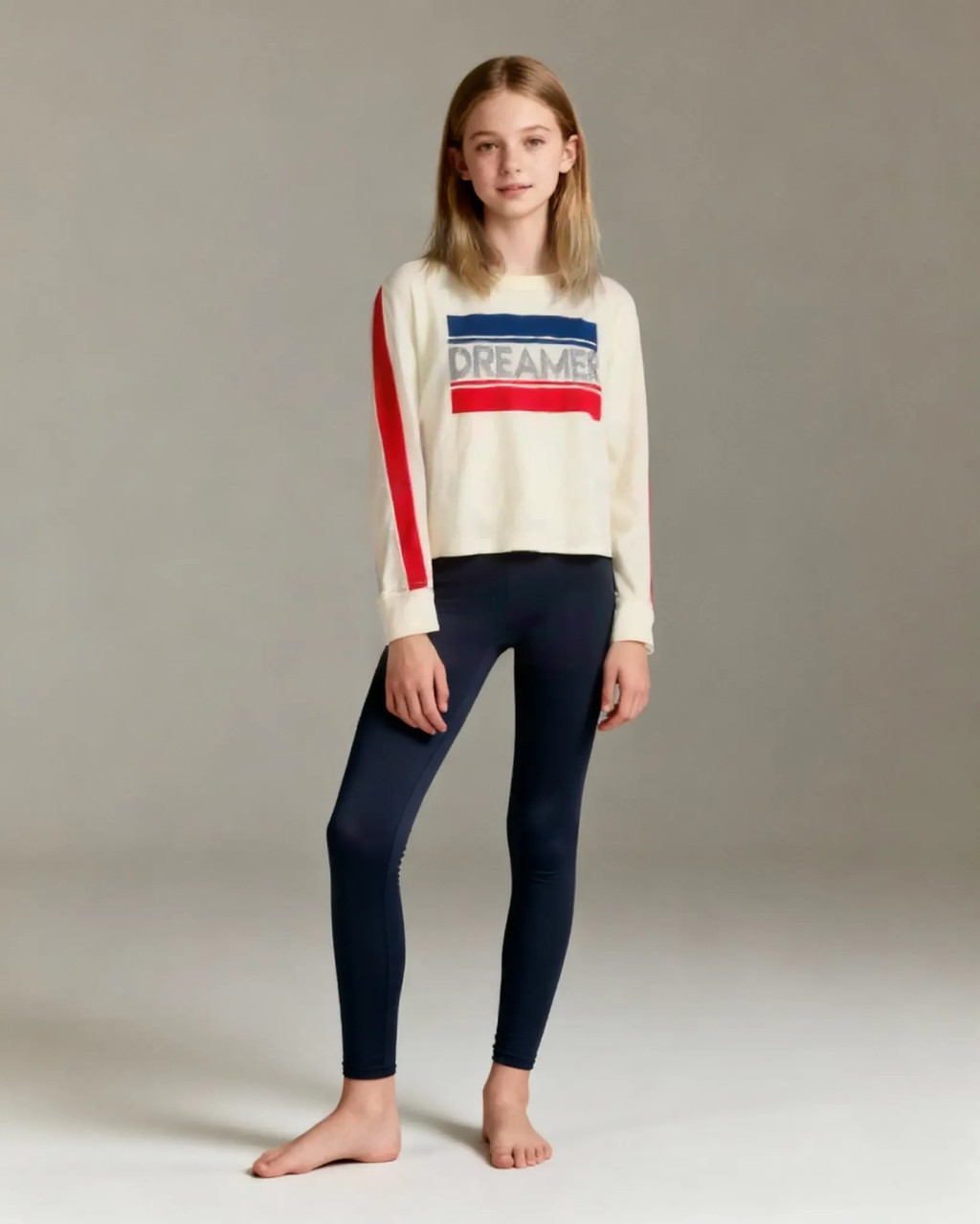 Ezüst csillámos „Álmodozó” felirat díszíti. Rövid, lezser felső. Anyaga 100% pamut. Hossza: 48 cm, ujja hossza nyaktól: 61 cm, szélessége: 42 cm.