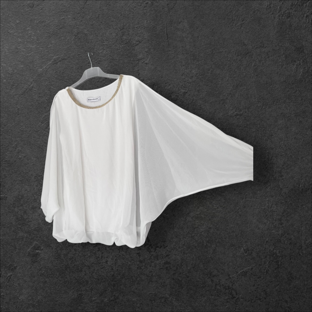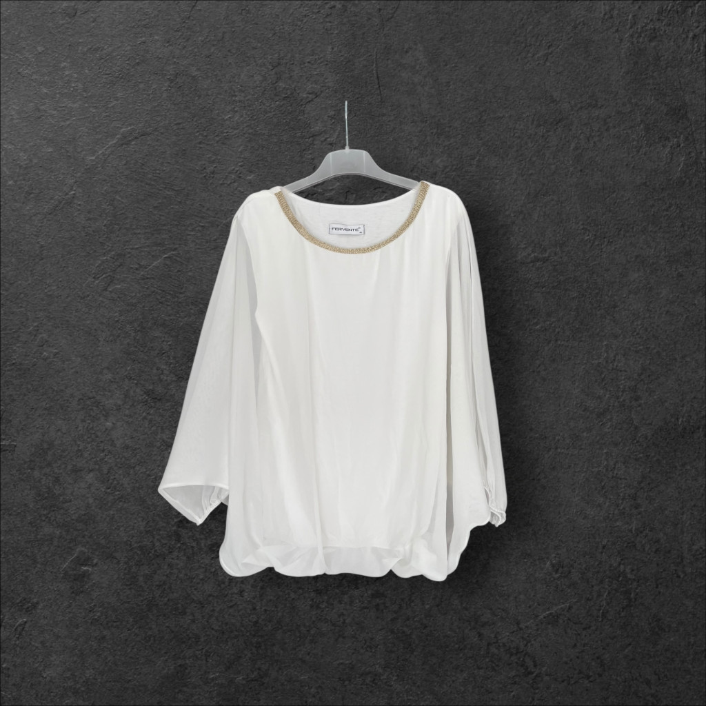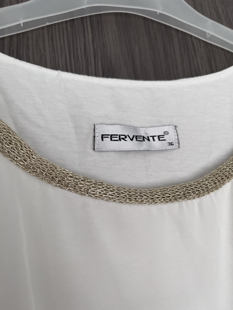 Fehér színű, arannyal díszített női blúz S-es méretben.