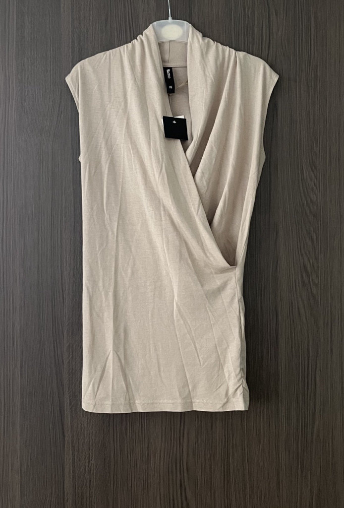 Bézs színű női felső XS-es méretben.