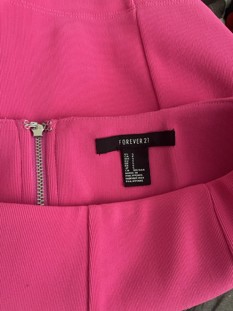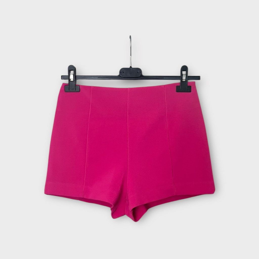 Rózsaszín, rugalmas anyagú női rövidnadrág S-es méretben.