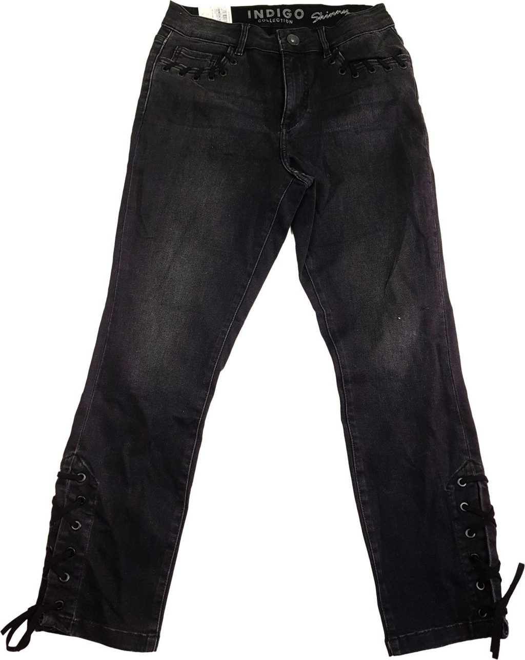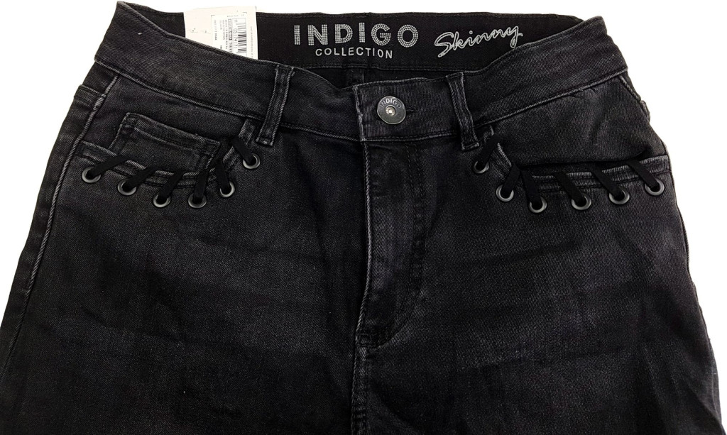 Zsebén és szára alján fűző díszíti. Anyaga 85% pamut, 14% poliészter, 1% elasztán. Címkéjén 36-os méret szerepel.