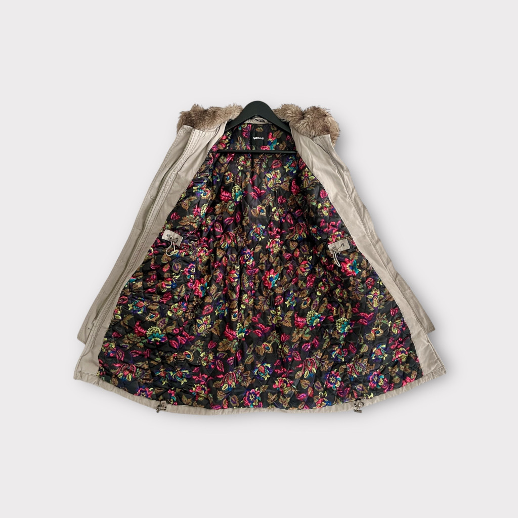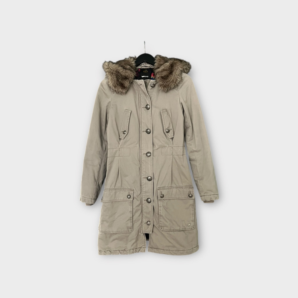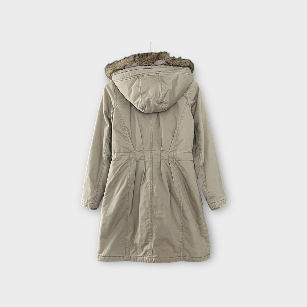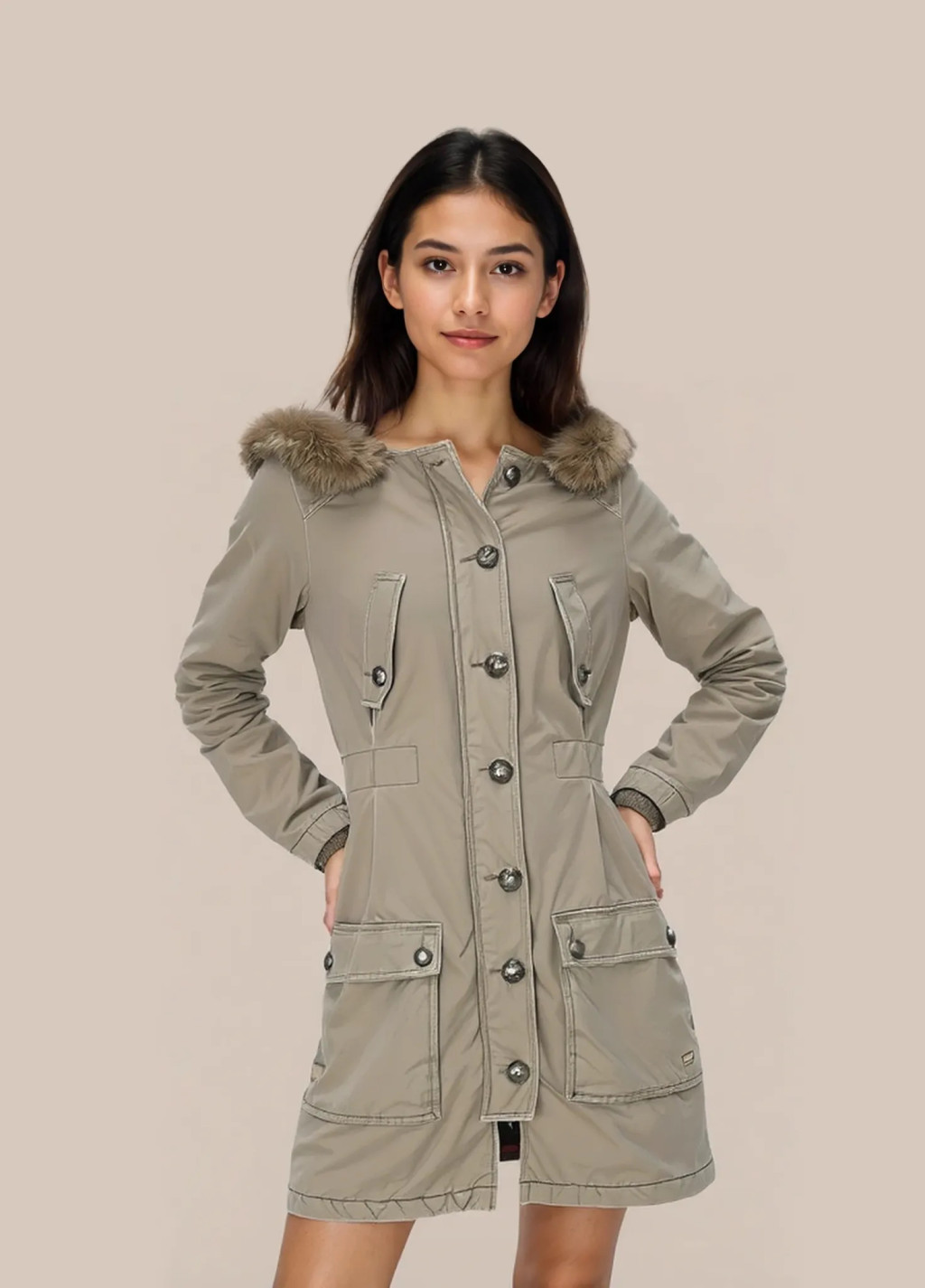 Szőrme kapucnis, nagyon csinos, prémium női kabát S-es méretben.