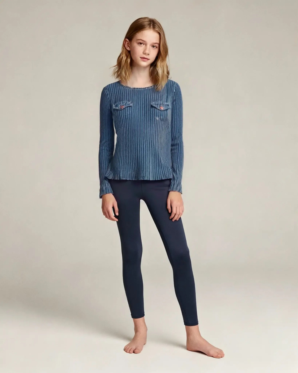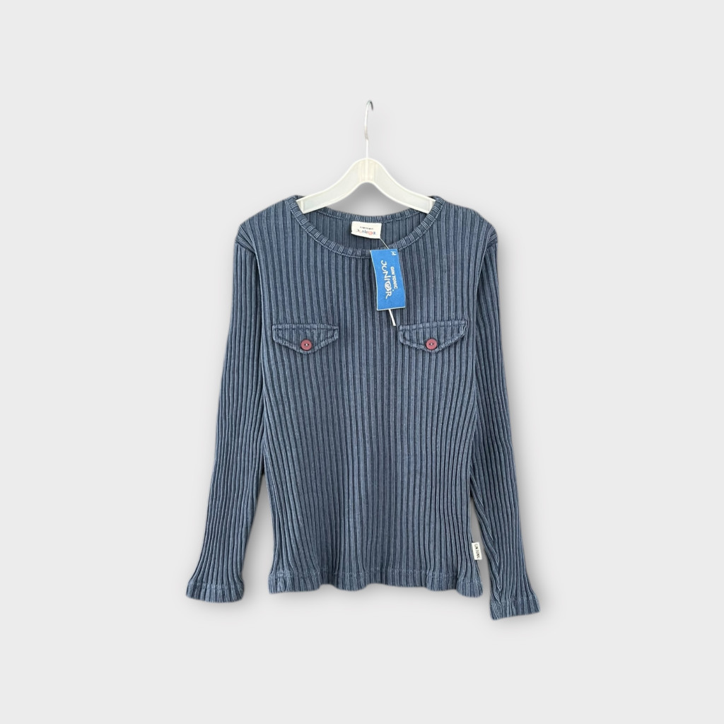 Bordázott anyagú, koptatott lányka felső 164-es méretben.