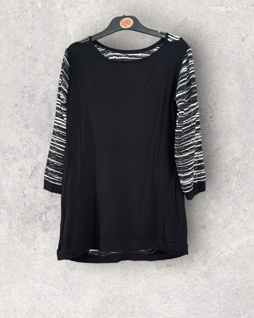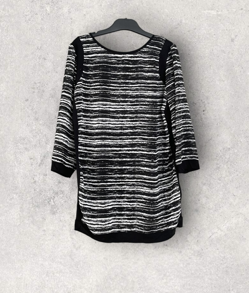 Fekete-fehér mintás női felső S-es méretben.