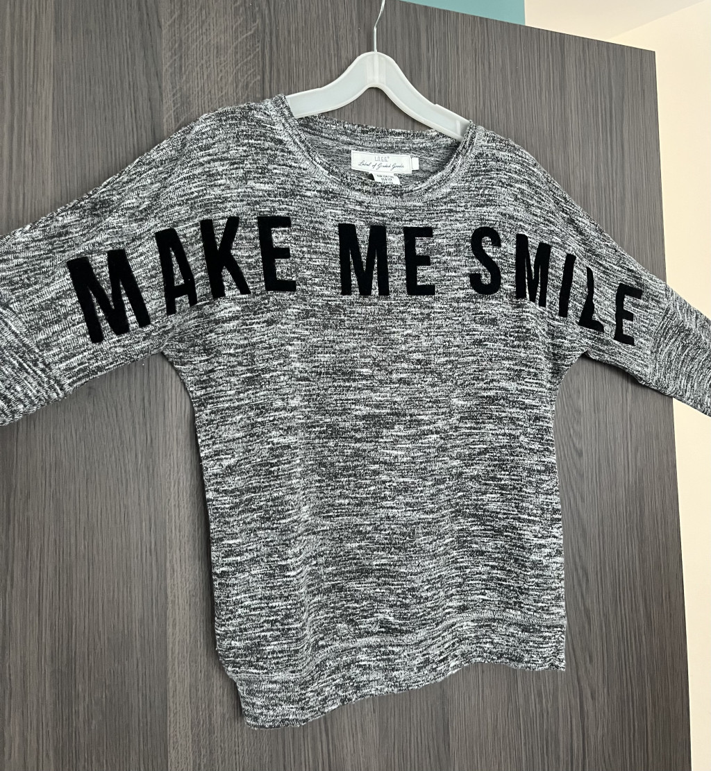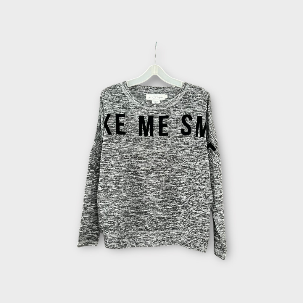 Finomkötött lányka pulóver felirattal.