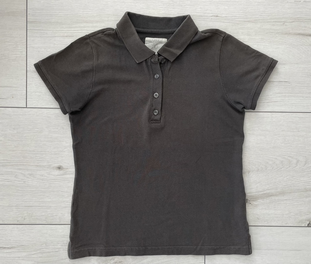 Sötétszürke, női, ingnyakú póló S-es méretben.