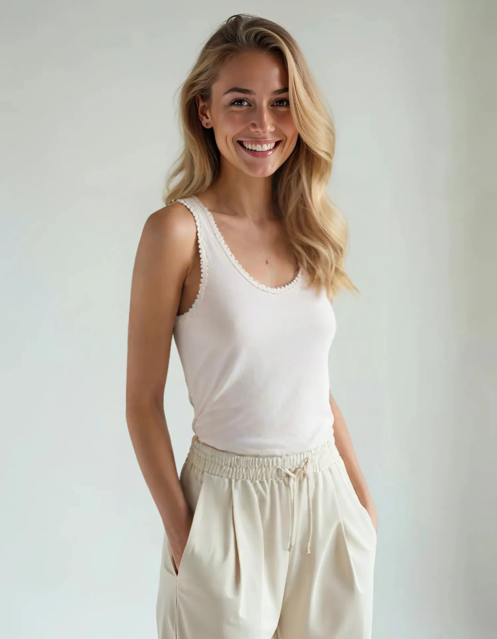Csipkeszegélyes női felső S-es méretben.