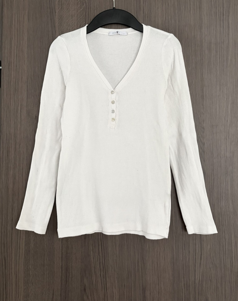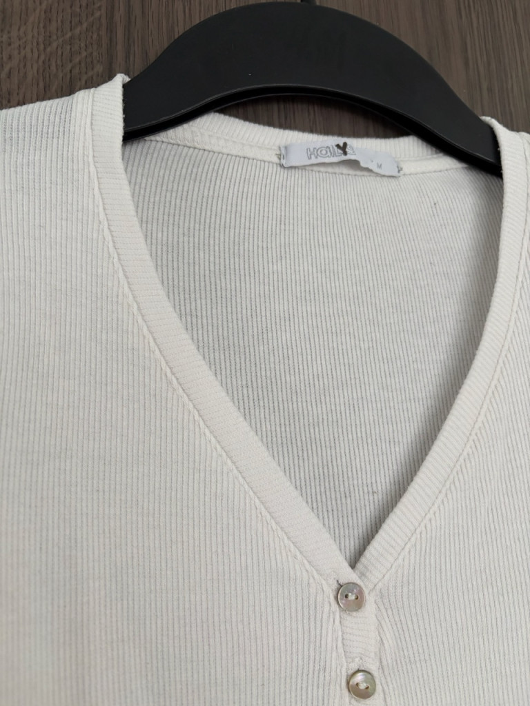 Bordázott anyagú női felső. A beleírt méret M, de S-es méretre ajánljuk.