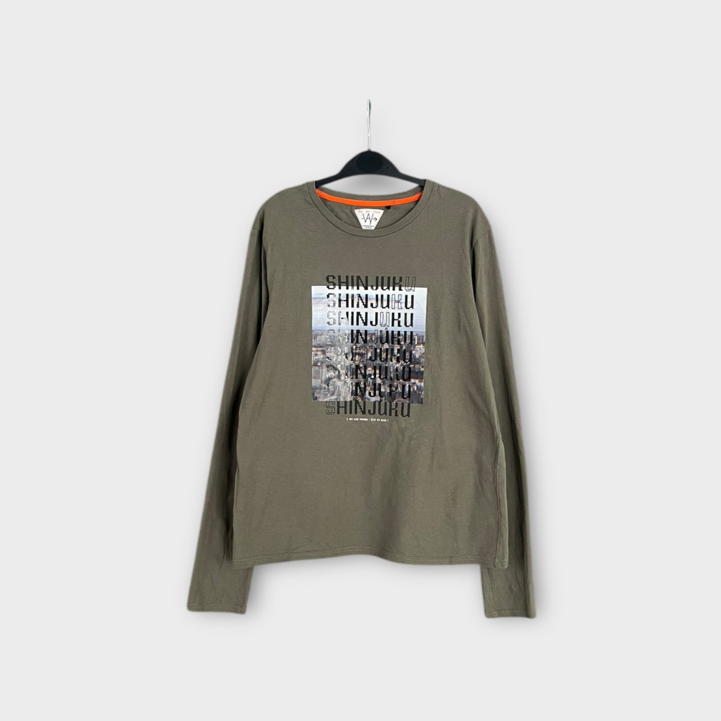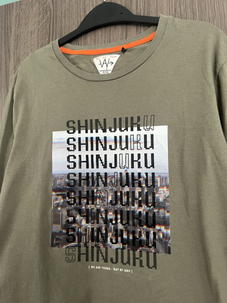 Nyomott mintás fiú felső 158-164-es méretben.