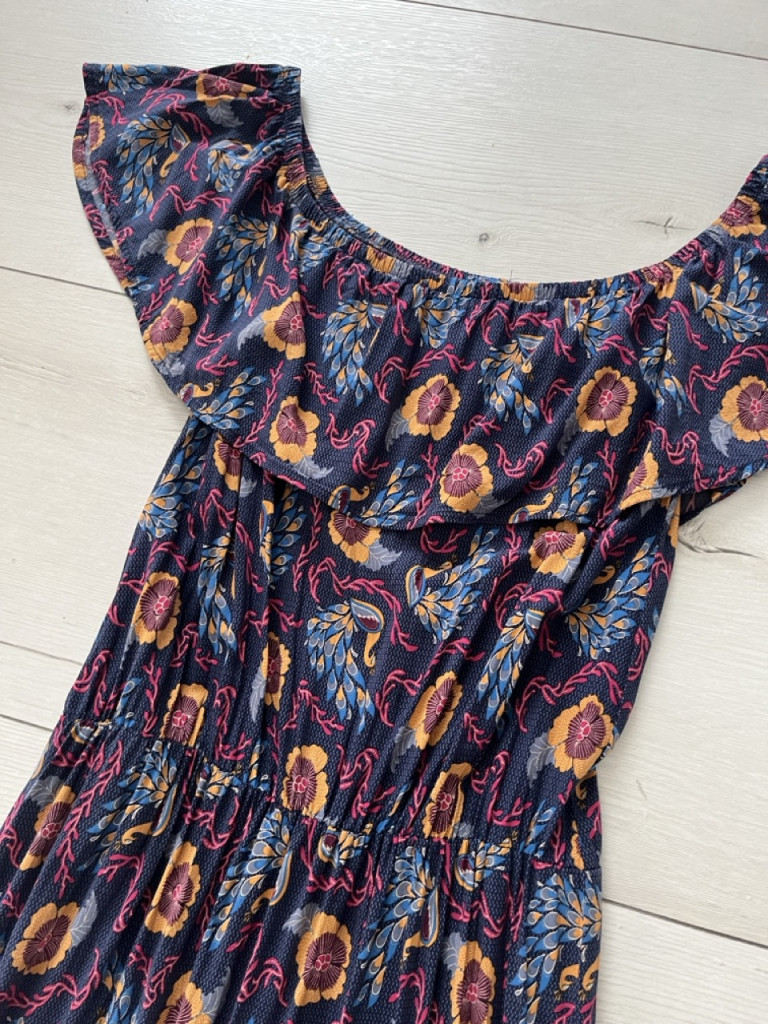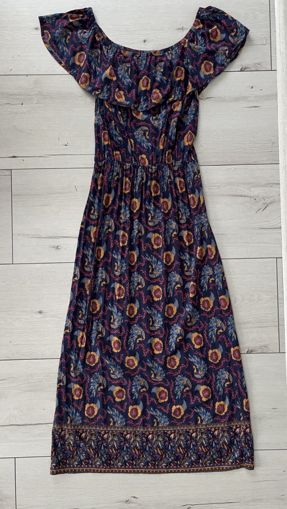 Lágy esésű, színes női maxiruha M-es méretben.