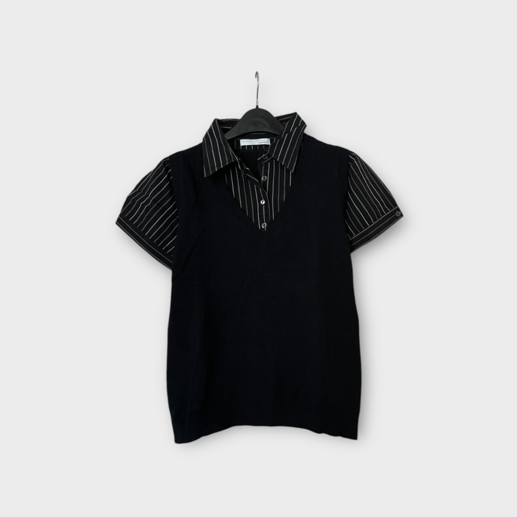 Finomkötött női pulóver ingnyakkal, S-es méretben.