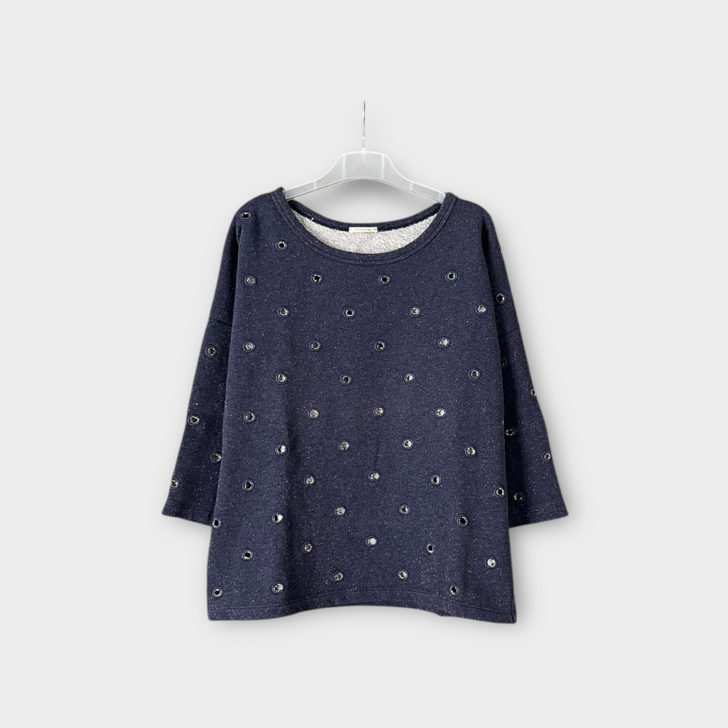Lyukmintás, csillámló női pulóver M-es méretben.