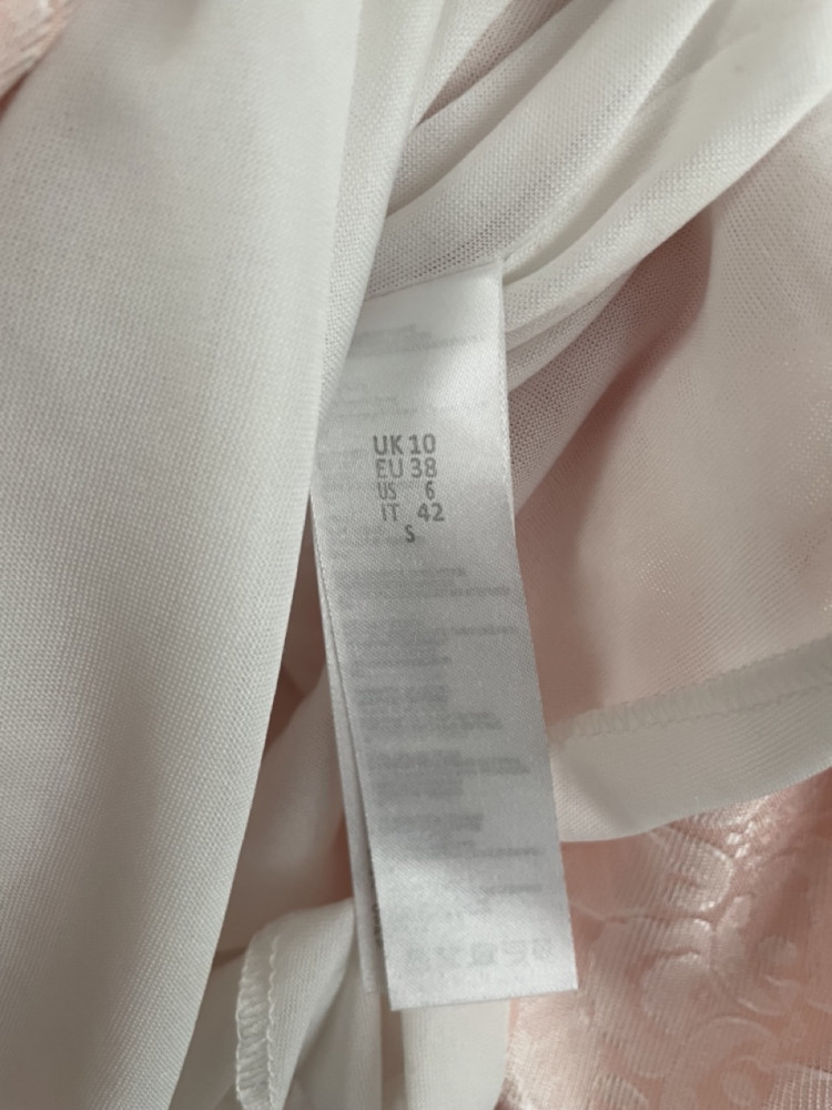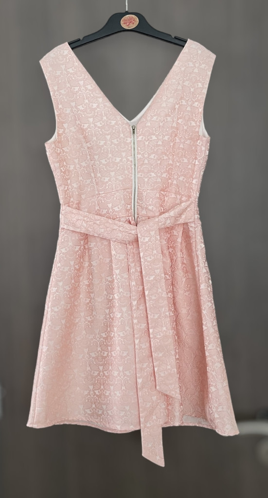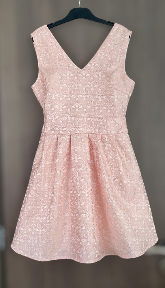 Texturált anyagú, halványrózsaszín női alkalmi ruha S-es méretben.