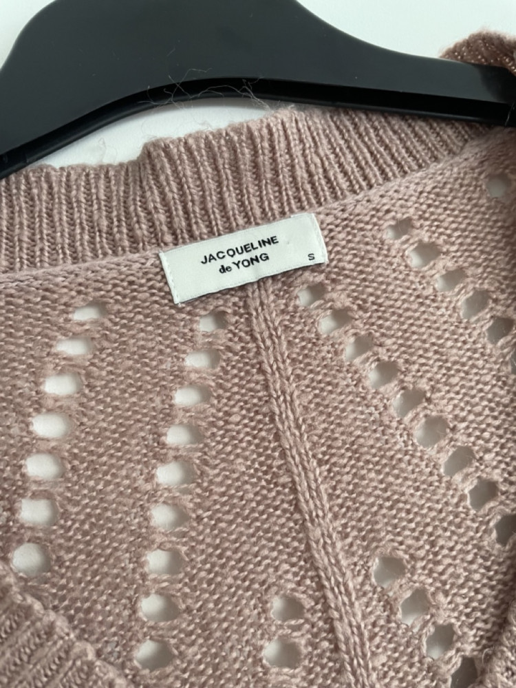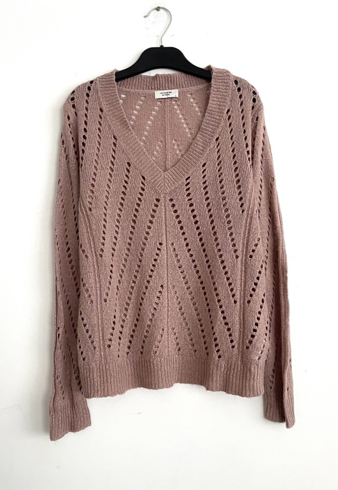 Rózsaszín lyukmintás női pulóver S-es méretben.