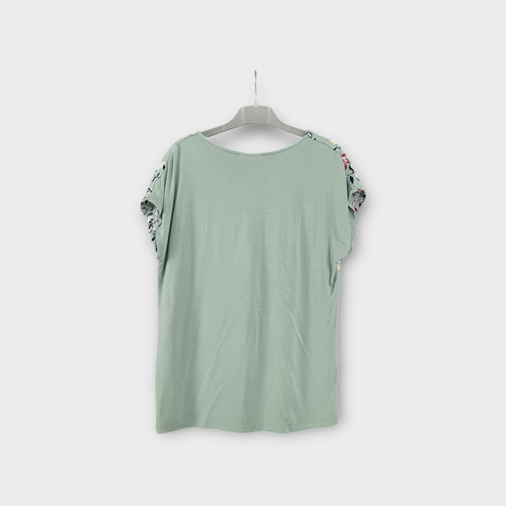 Két anyagú, virágos női felső M-es méretben.