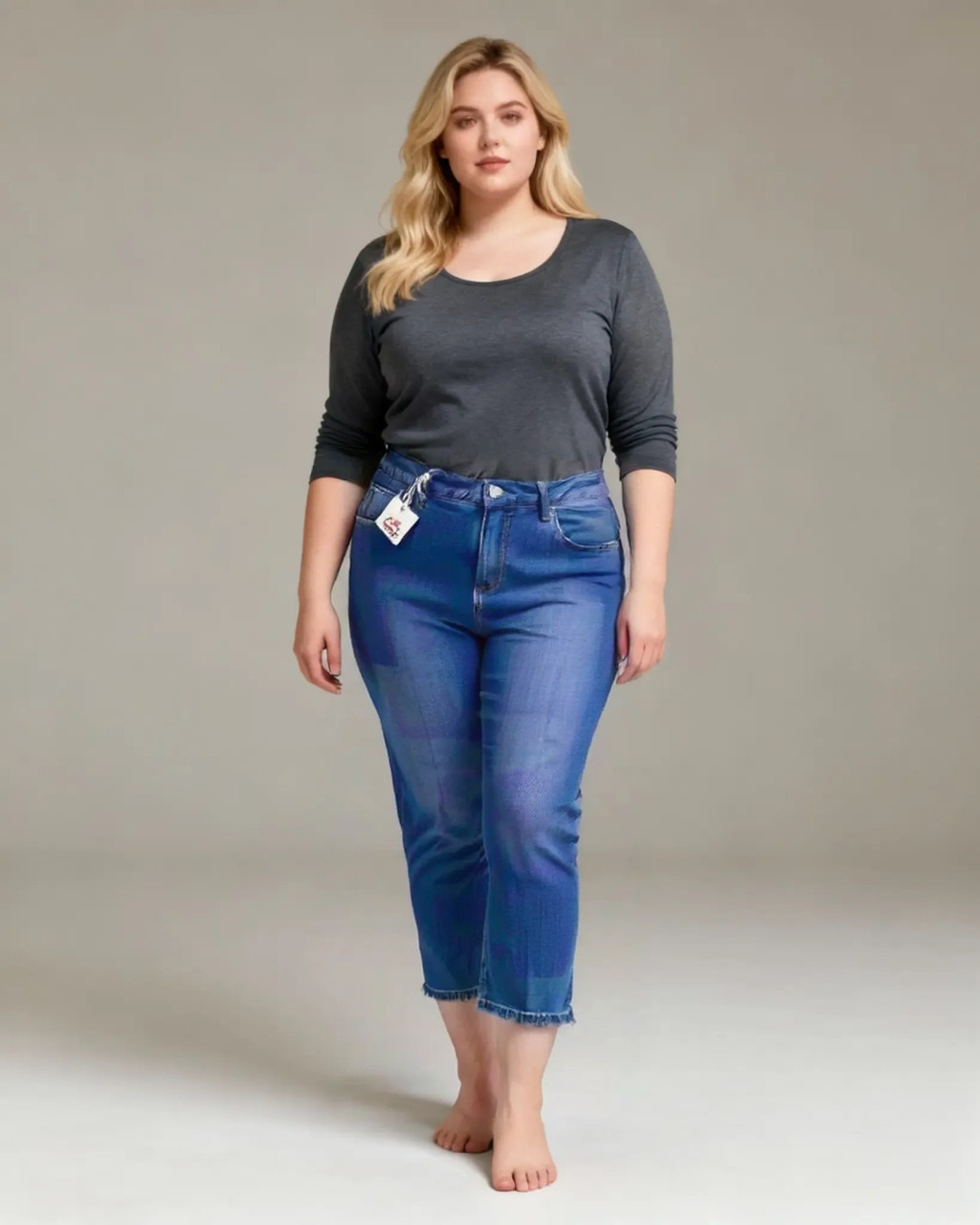 Magasderekú, mom fazonú női farmernadrág 40-es méretben.