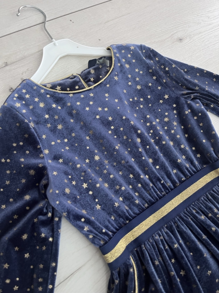 Gyönyörű, csillagos kislány bársonyruha 110-es méretben.