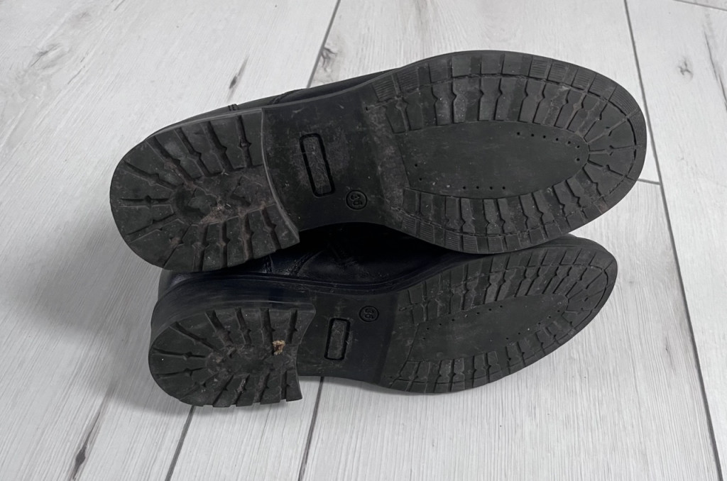 36-os méretű, láncos bőrcsizma.