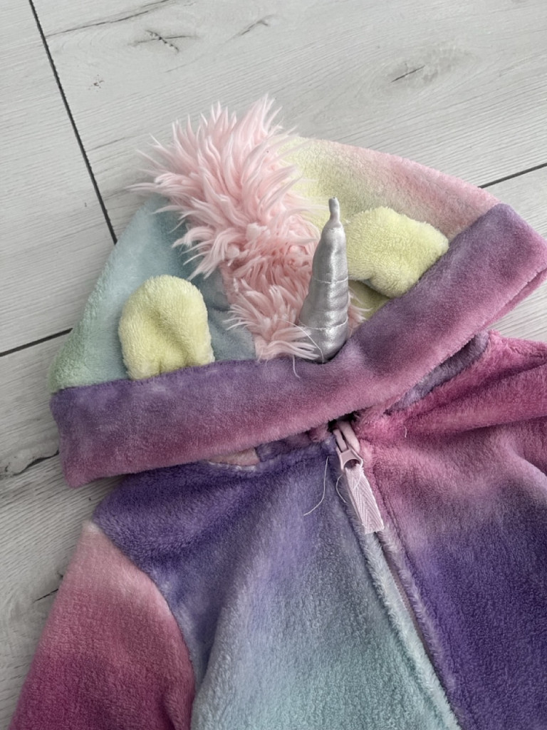 110-es méretű, puha unikornis pulóver.