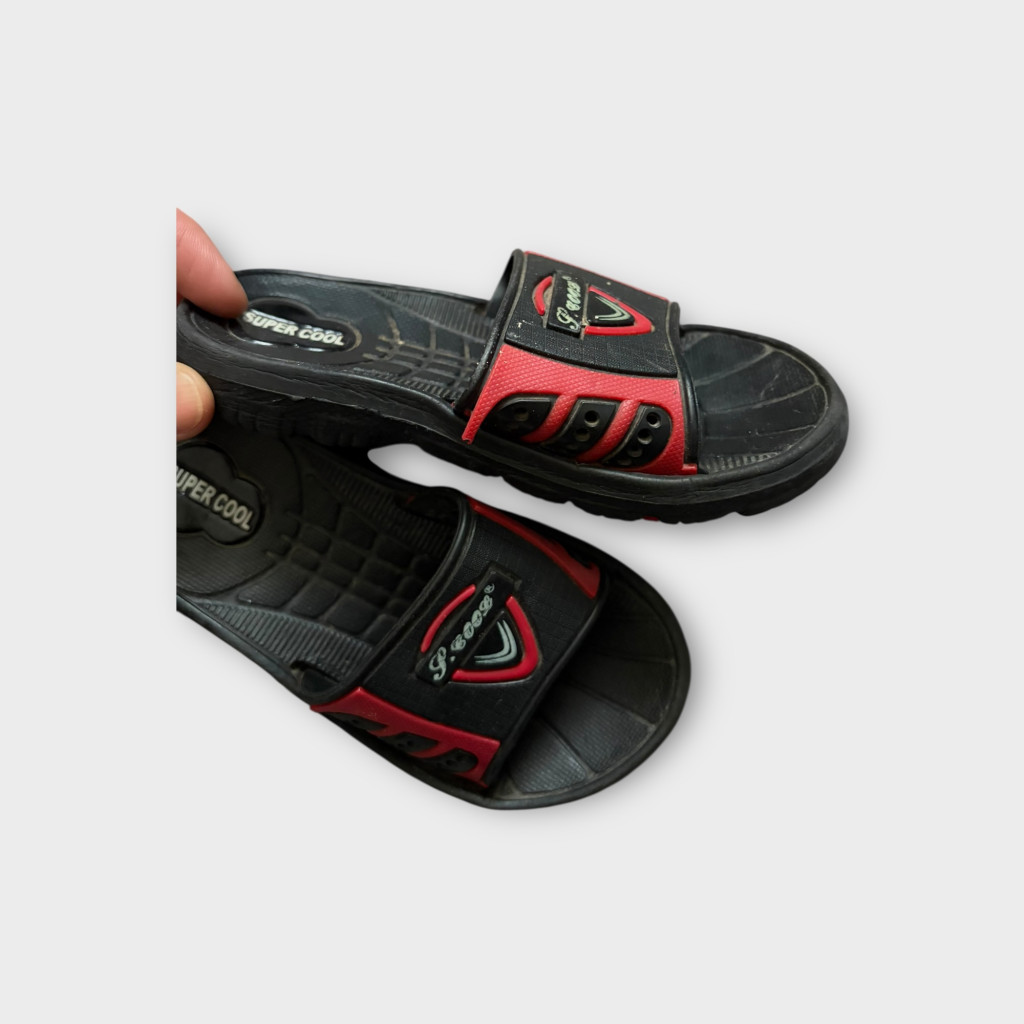 Hibája: az egyik papucsról a piros minta kezd felválni.