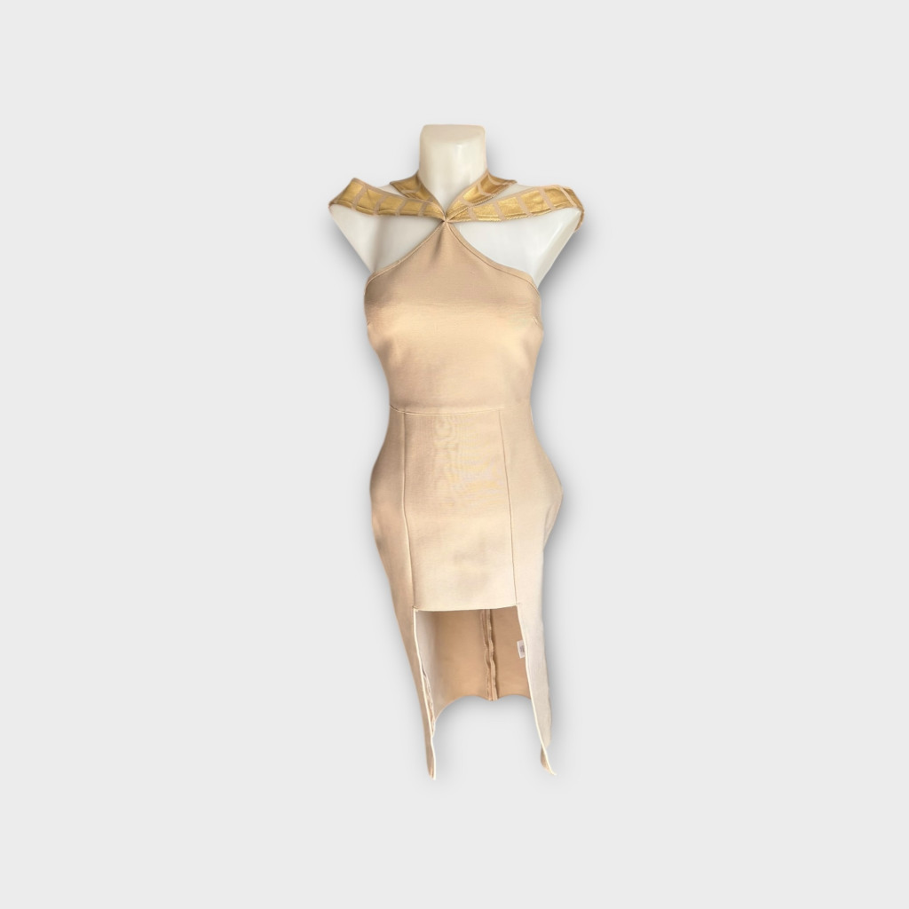 Bézs színű, különleges női ruha M-es méretben.