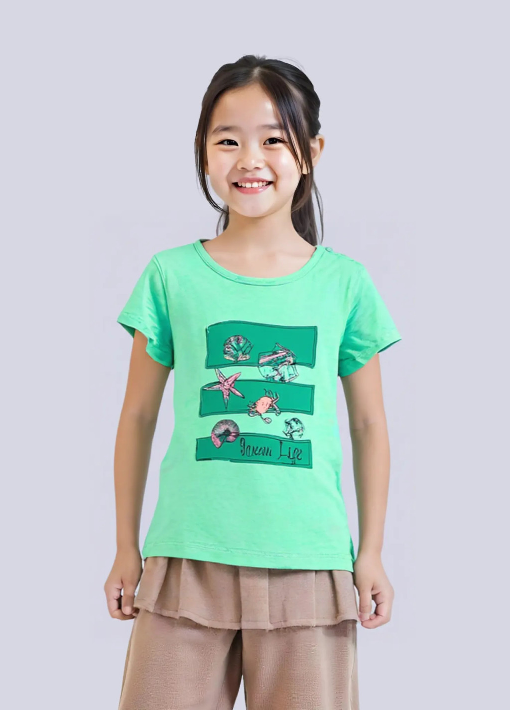 Kagyló mintás kislány póló 86-92-es méretben.