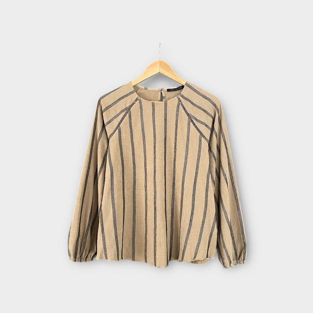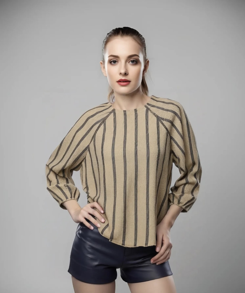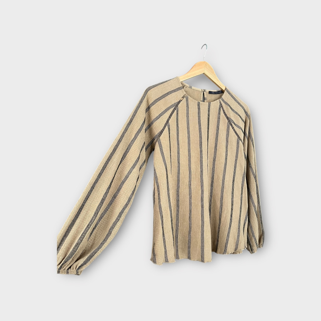 Bővebb fazonú, csíkos női blúz M-es méretben.