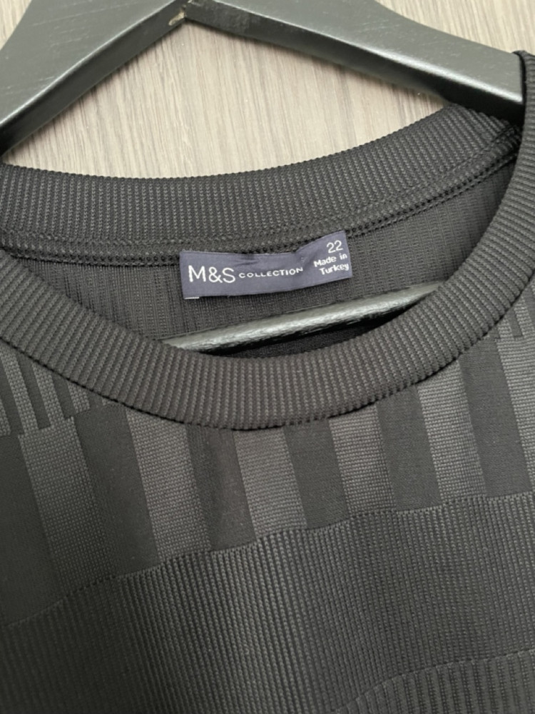 Fényes anyagú, fekete színű női felső XL-es méretben.