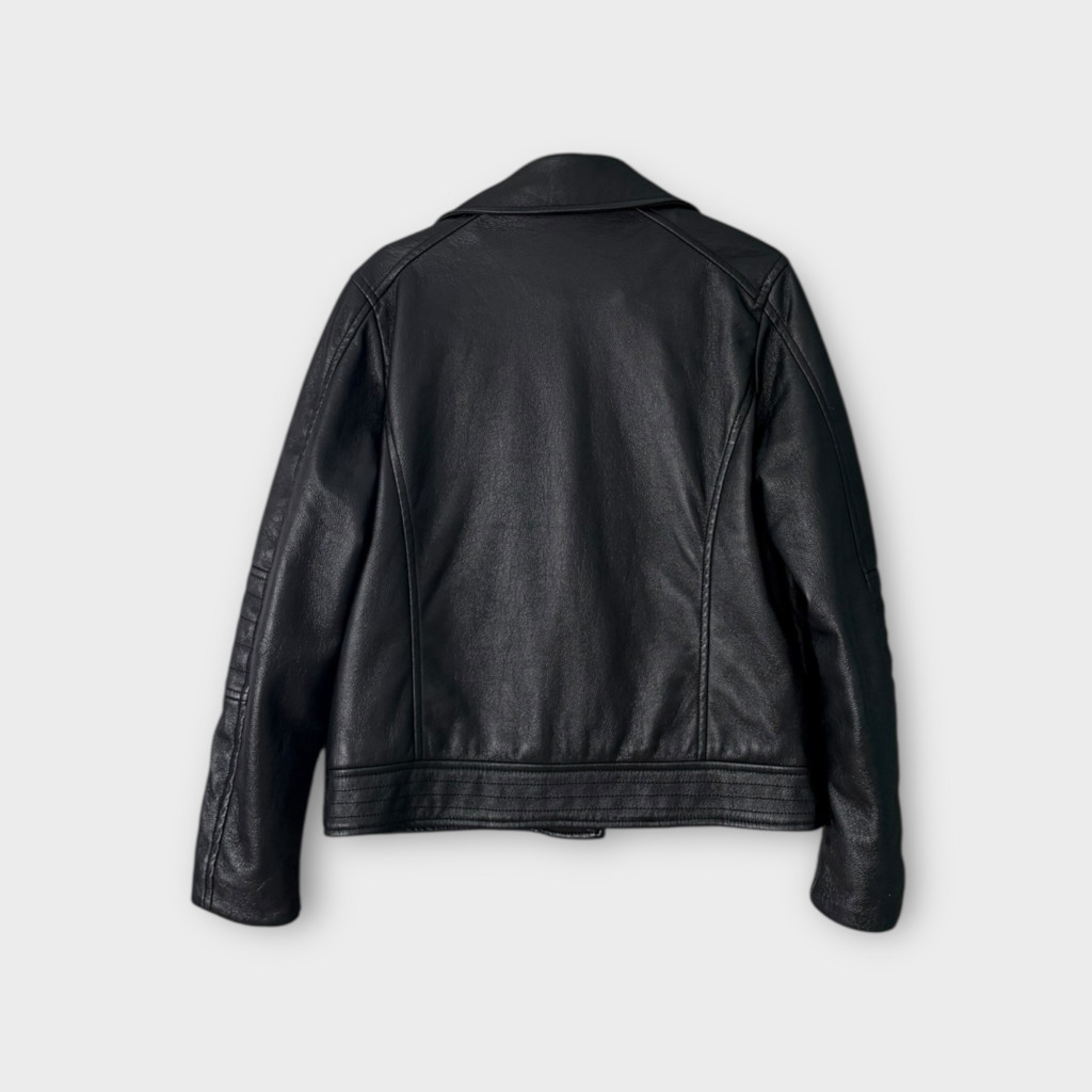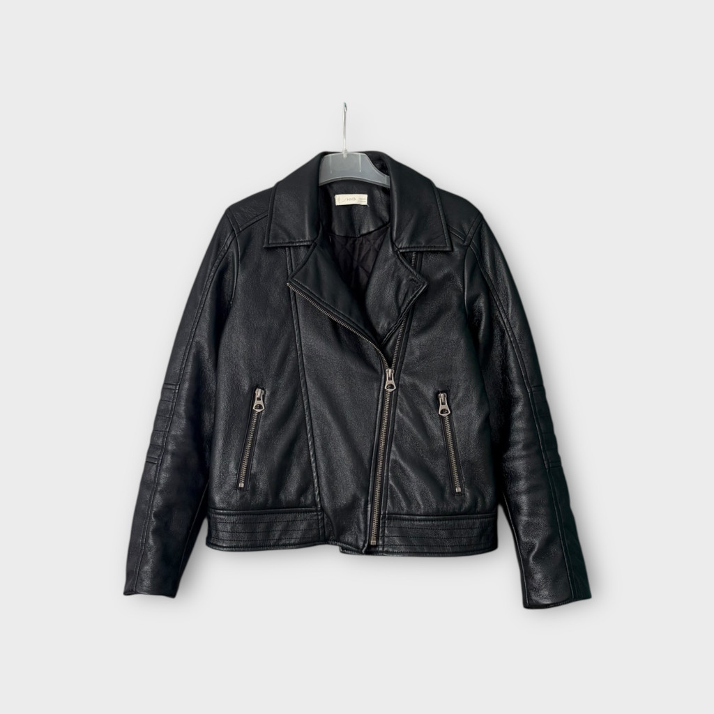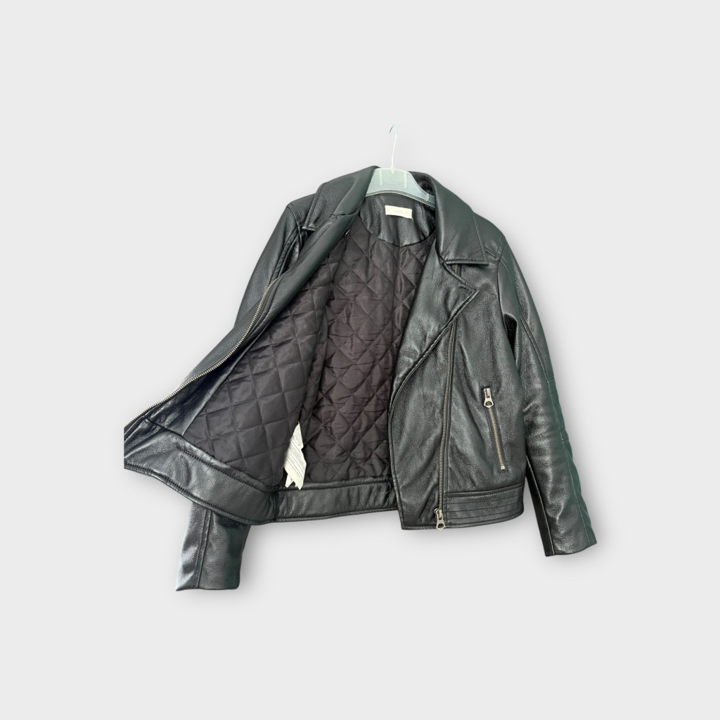 Enyhén párnázott, puha anyagú műbőr dzseki 152-es méretben.